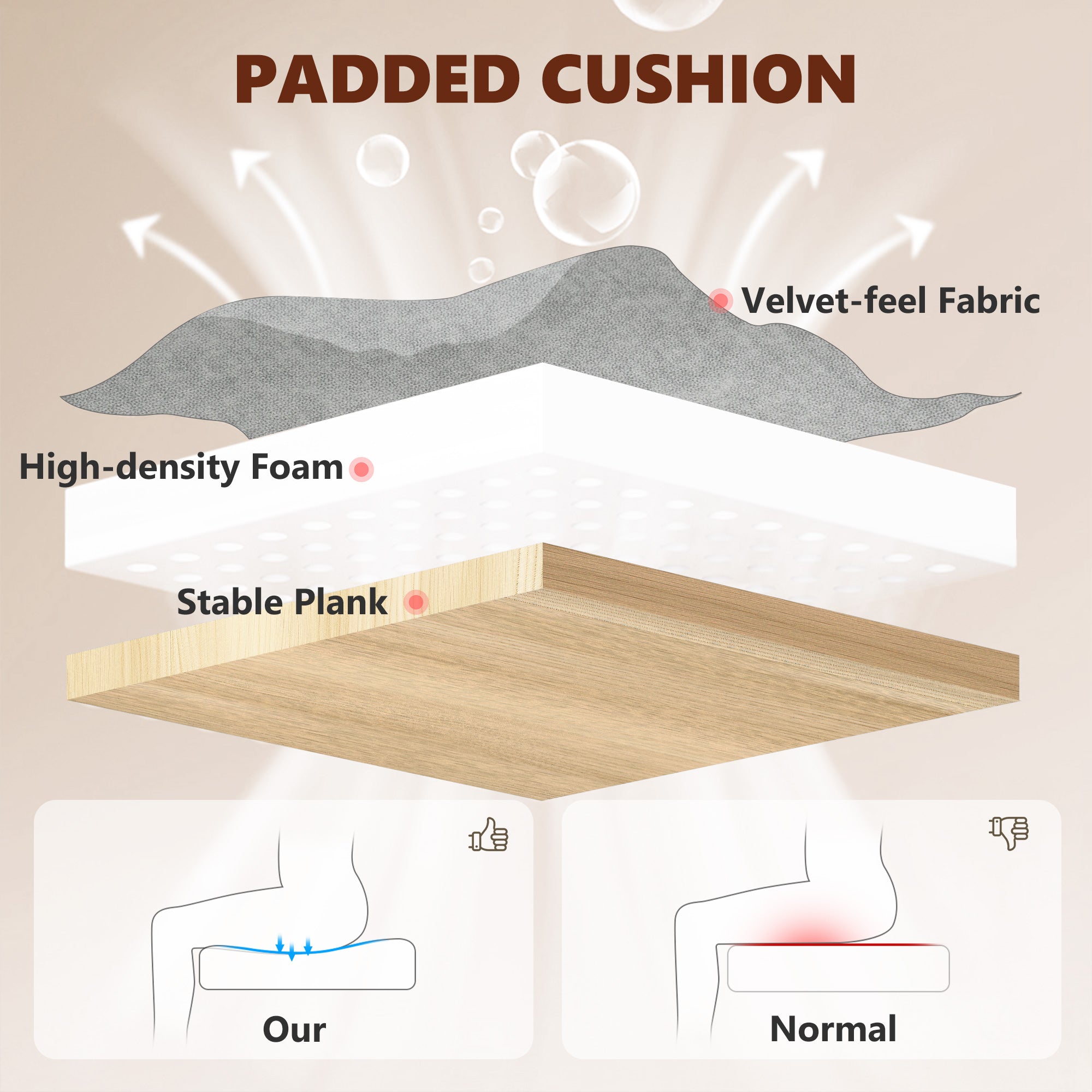 - High-density foam and double-layer padding ensure firm yet cosy seating support
