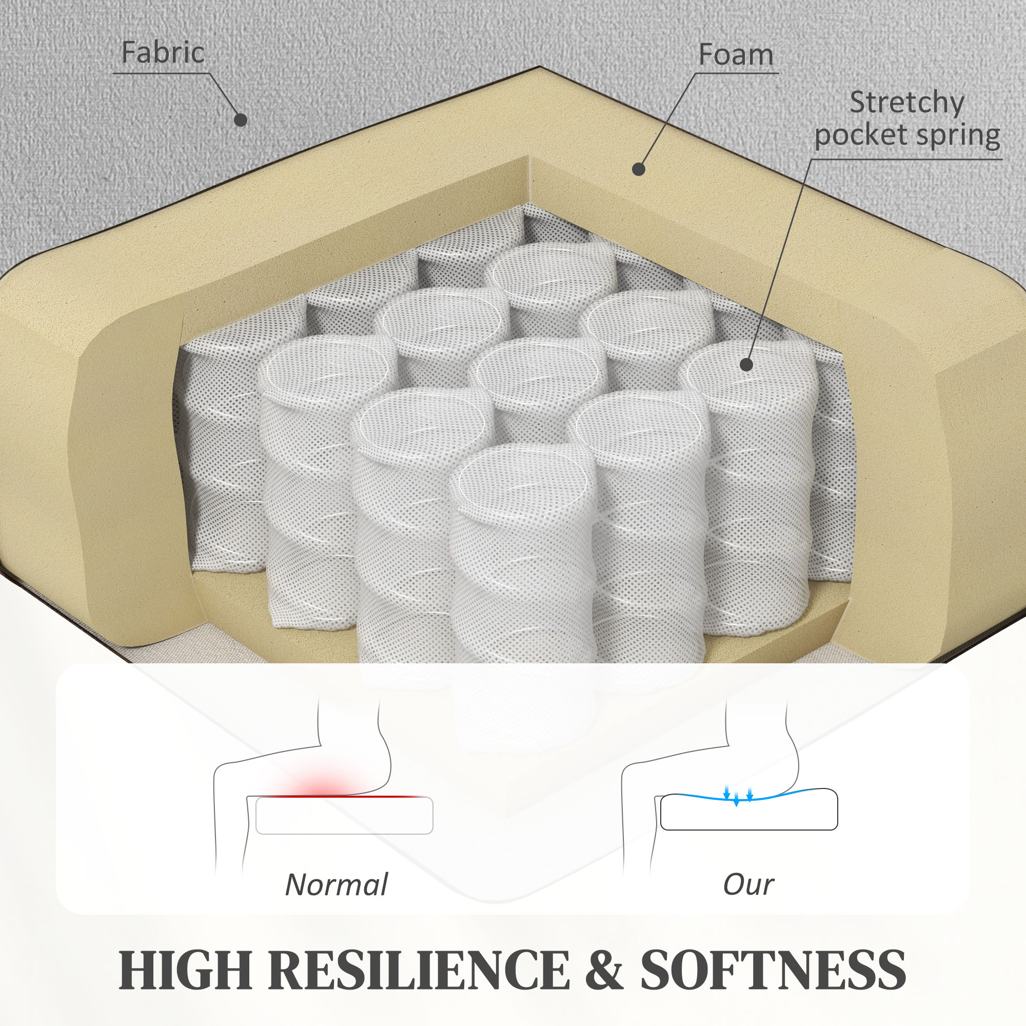 - Overstuffed padding, with 'S' springs and pocket springs: sink in comfortably