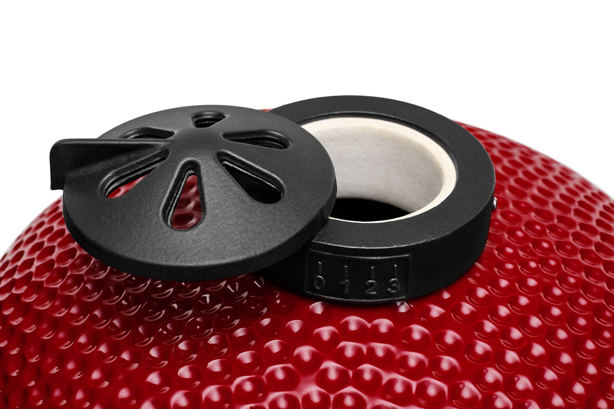 KAMADO Bono Grande Limited barbecue grill has a ceramic frame, inside there is a firebox ¬¬¬– a ceramic tank for charcoal. The bottom part of the structure has an air vent, through which the airflow enters the firebox. The domed lid of the grill has another adjustable air vent, through which the airflow goes out. The vents are used to regulate the cooking temperature. Barbecue grids are placed over the fire to place the steaks on them. As well, the lid has an opening for placing the thermometer to measure the temperature of grilled food.
