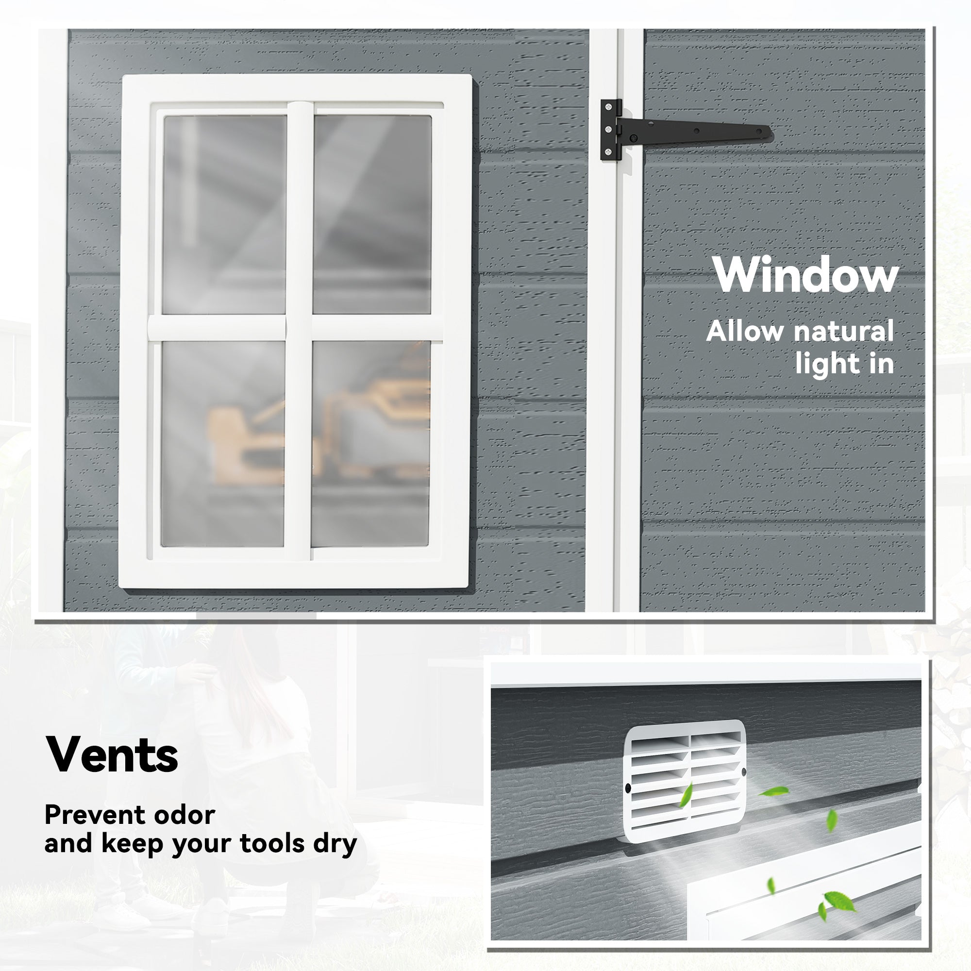 Tidy up your garden effortlessly with the Outsunny Garden Storage Shed! Boasting a spacious 284 x 161 cm inner, it's great for stashing mowers, bikes, tools and seasonal gear. Designed with two large windows and dual vents, enjoy natural light and airflow to keep your equipment fresh and accessible. Built with UV-resistant, water-repellent materials, this shed promises an all-weather solution that’s fuss-free and low-maintenance!