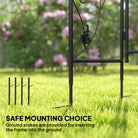 - Secure with ground stakes for installation in grass