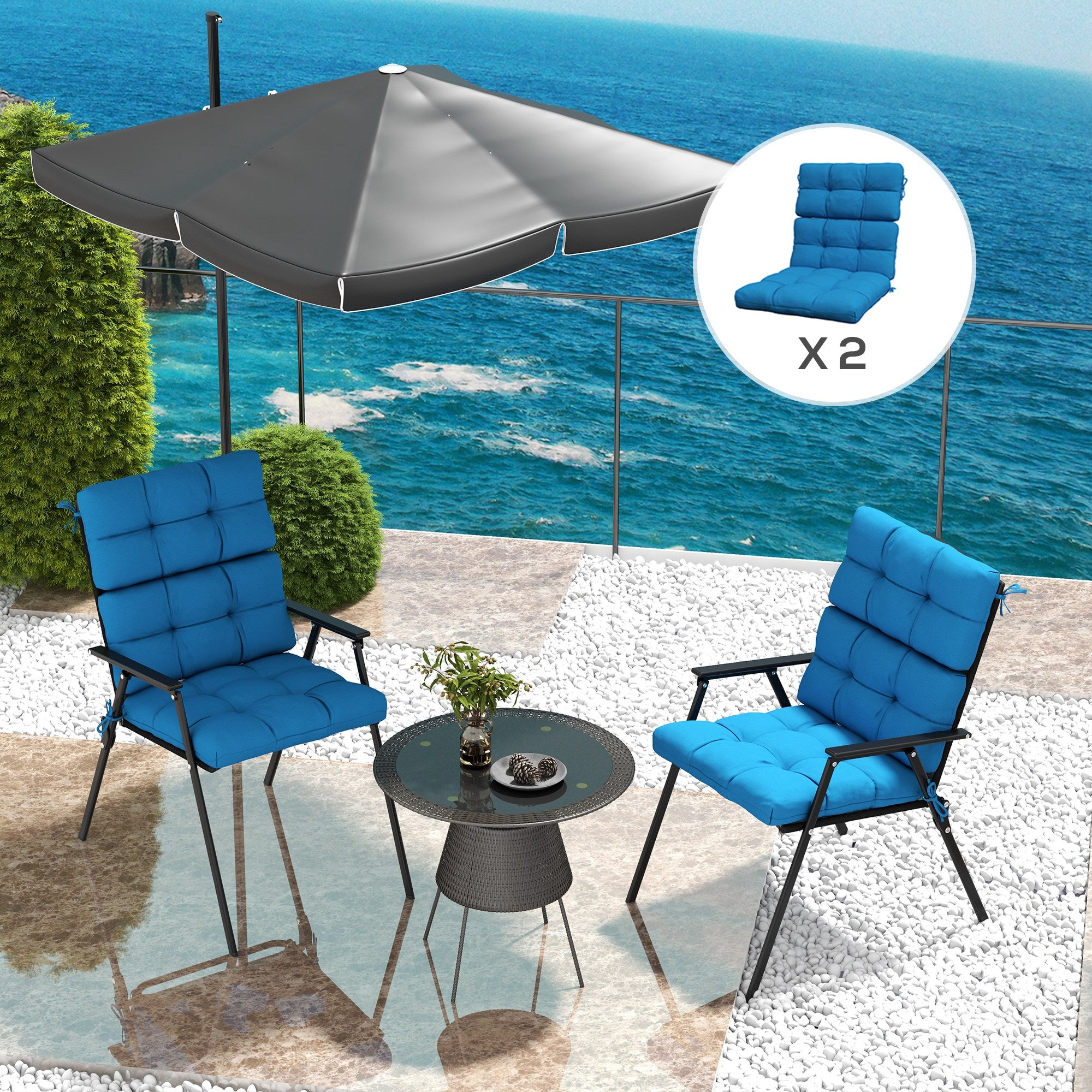 Outsunny 2-Piece Seat Cushion Replacement with Backrest, Garden Patio Chair Cushions Set with Ties, Blue