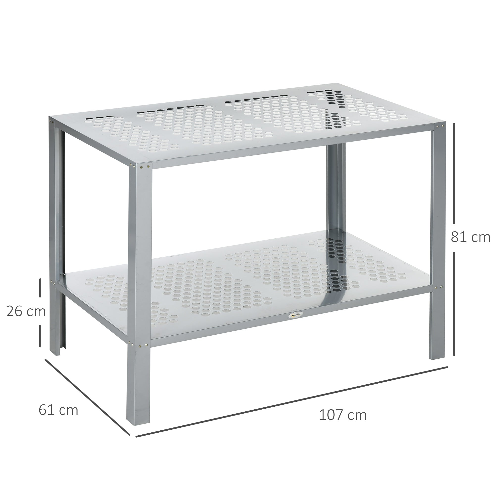 Outsunny 2-Tier Plant Stand, Corner Plant Shelf for Outdoor and Indoor Storage Organizer, Freestanding Flower Rack with Steel Frame, Mesh Board, Silver