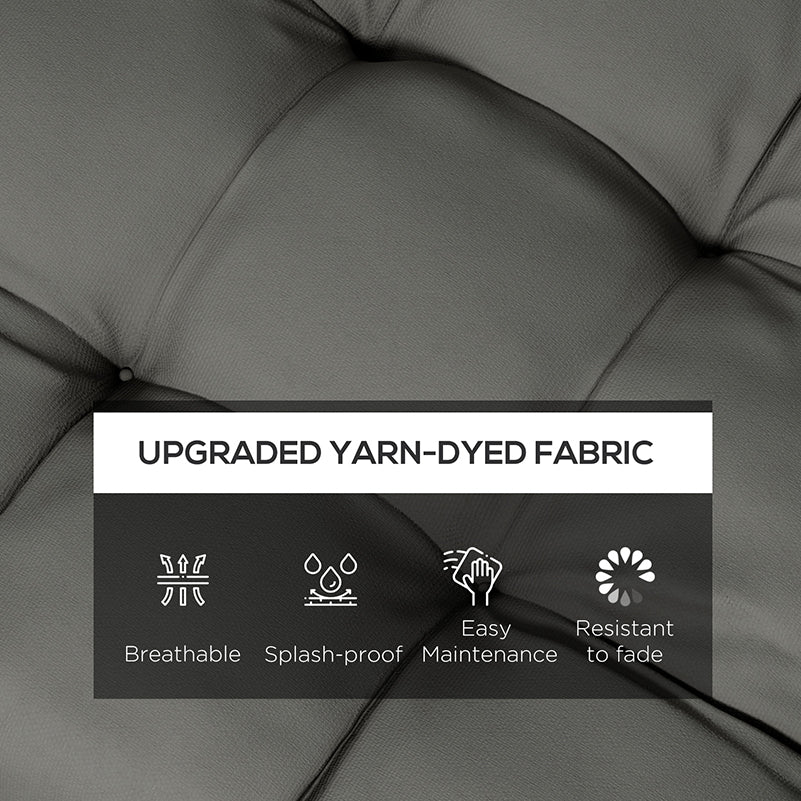 Colour meets comfort with this Outsunny cushion set. Filled with thick foam, you'll enjoy sitting outdoors for extended hours. Fabric covers are soft, the tufting adds style. Flame retardant for safety, each cover is resistant to light stains for cleanliness. Complete with tie fastenings to secure to each seat.