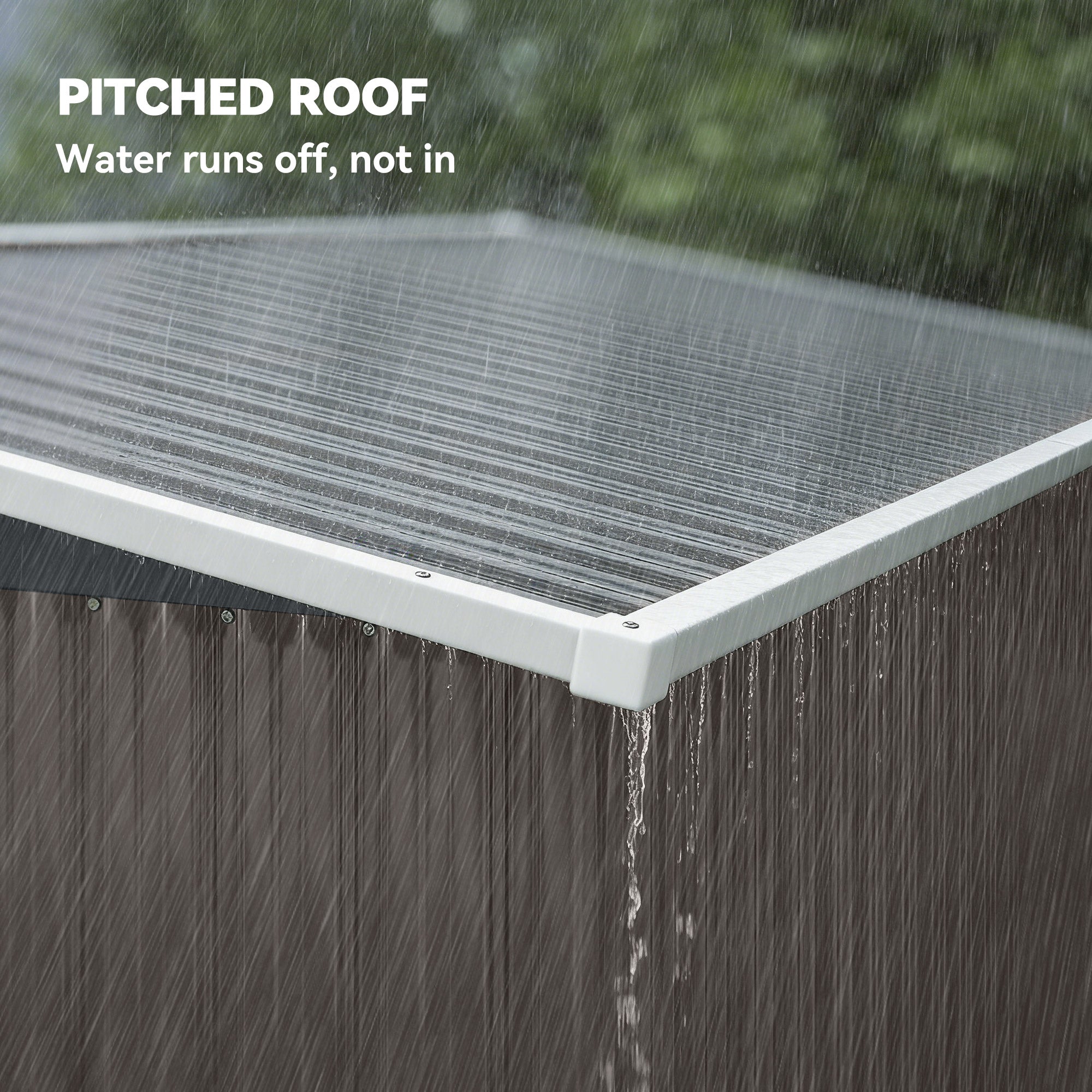 - Sloped roof design efficiently sheds rain and snow buildup