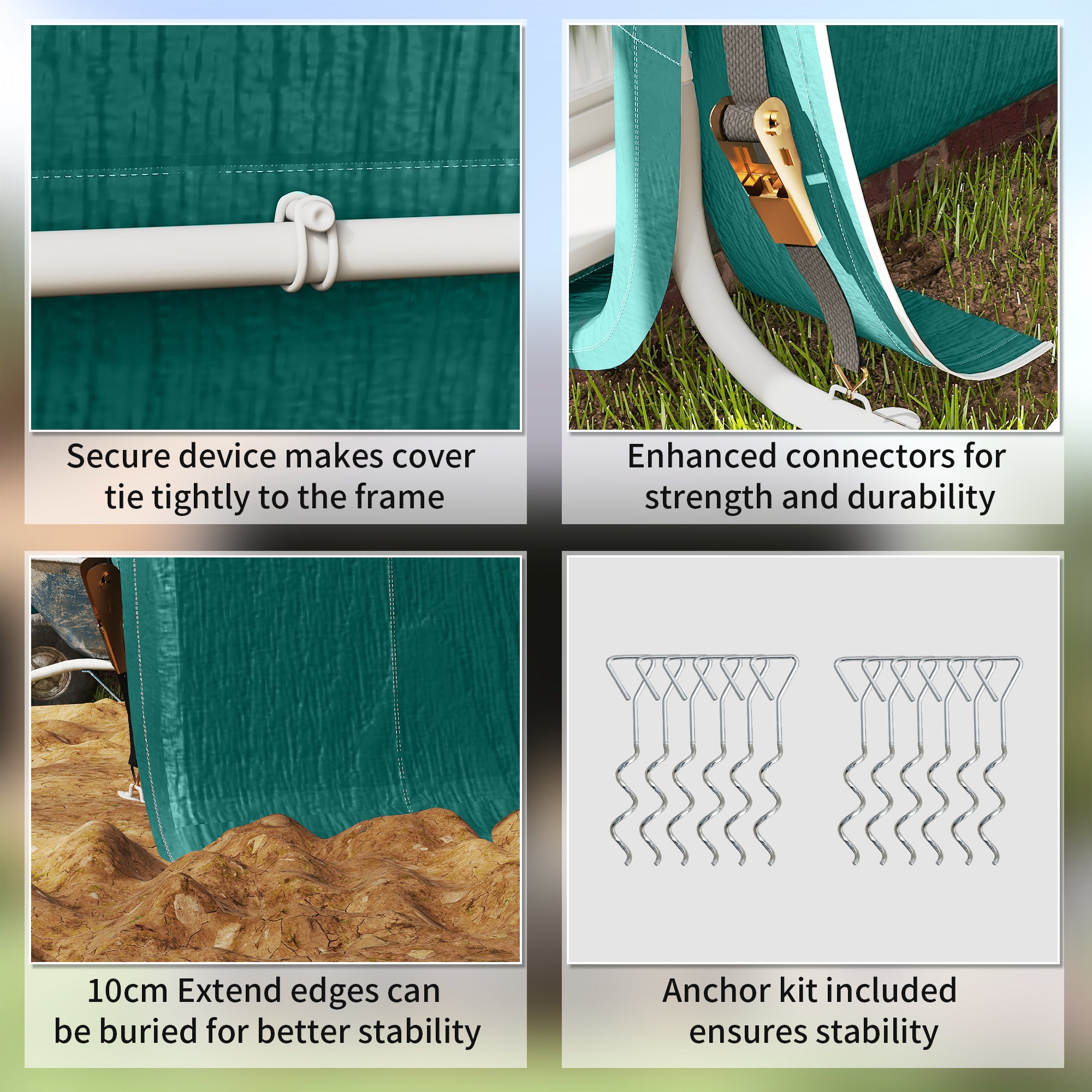 - Ground stakes and guy ropes keep the structure firmly secured outdoors