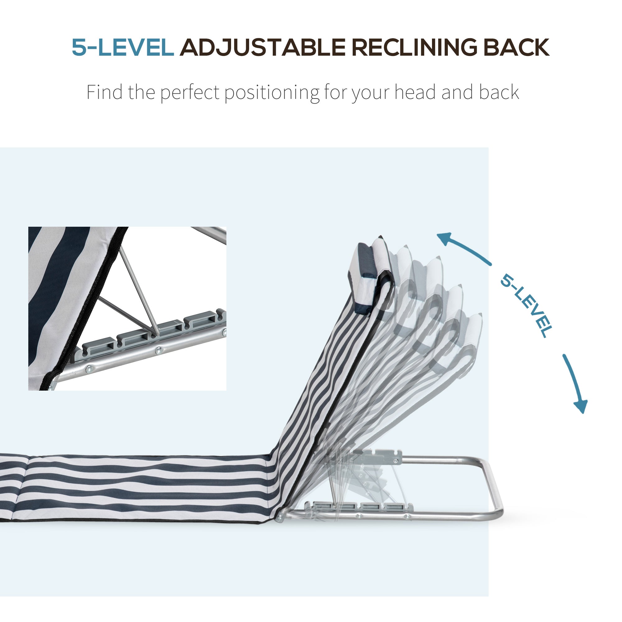 Outsunny Set of 2 Foldable Garden Beach Chair Mat Lightweight Outdoor Sun Lounger Seats Adjustable Back Metal Frame PE Fabric Head Pillow w/ Carry Bag, Blue