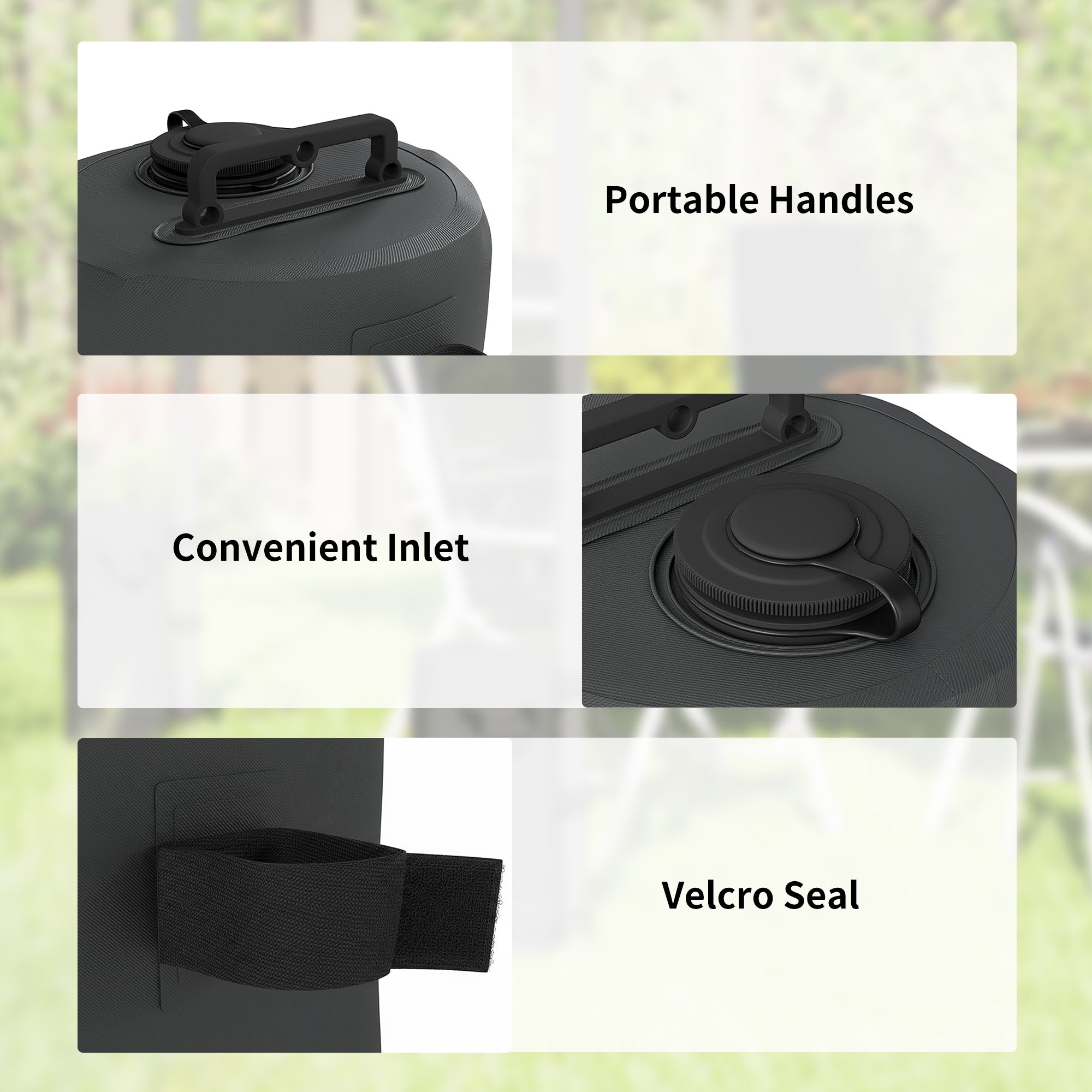 - Portable handles allow for easy transport and placement