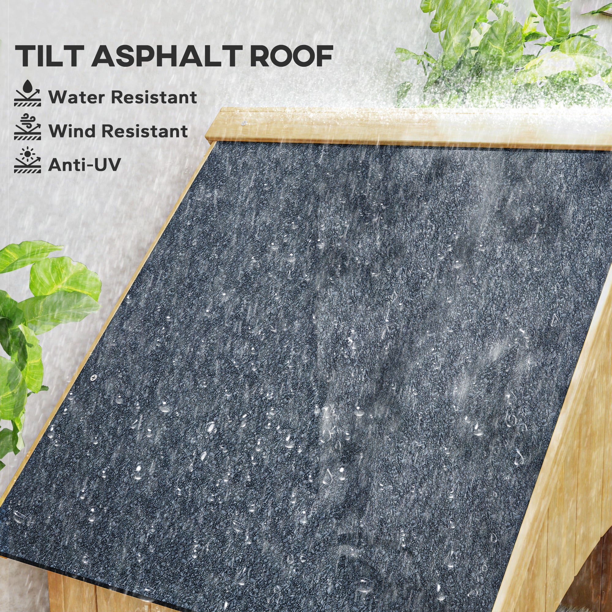 - Sloped roof with asphalt panels to cover - protecting inside from light-medium weather