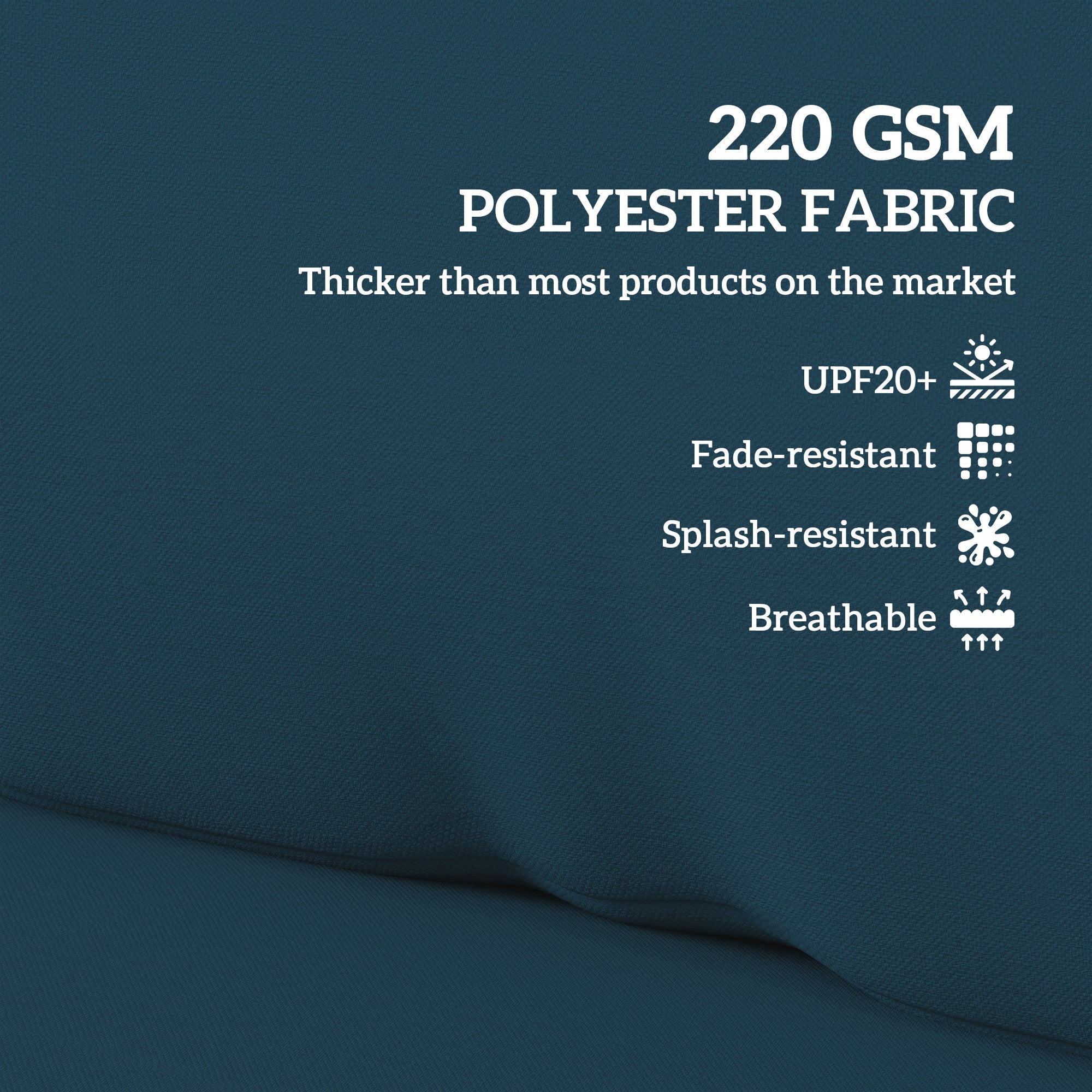 - 220 gsm polyester fabric provides UPF20+ protection. Won't fade