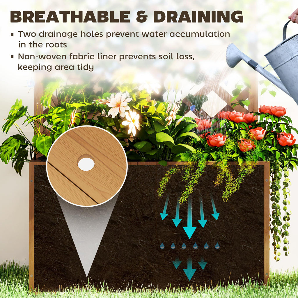 Outsunny Wooden Planter with Trellis, Freestanding Raised Garden Bed with Drainage Holes, Outdoor Planter Box with Liner for Vegetables, Herbs and Flowers, Natural
