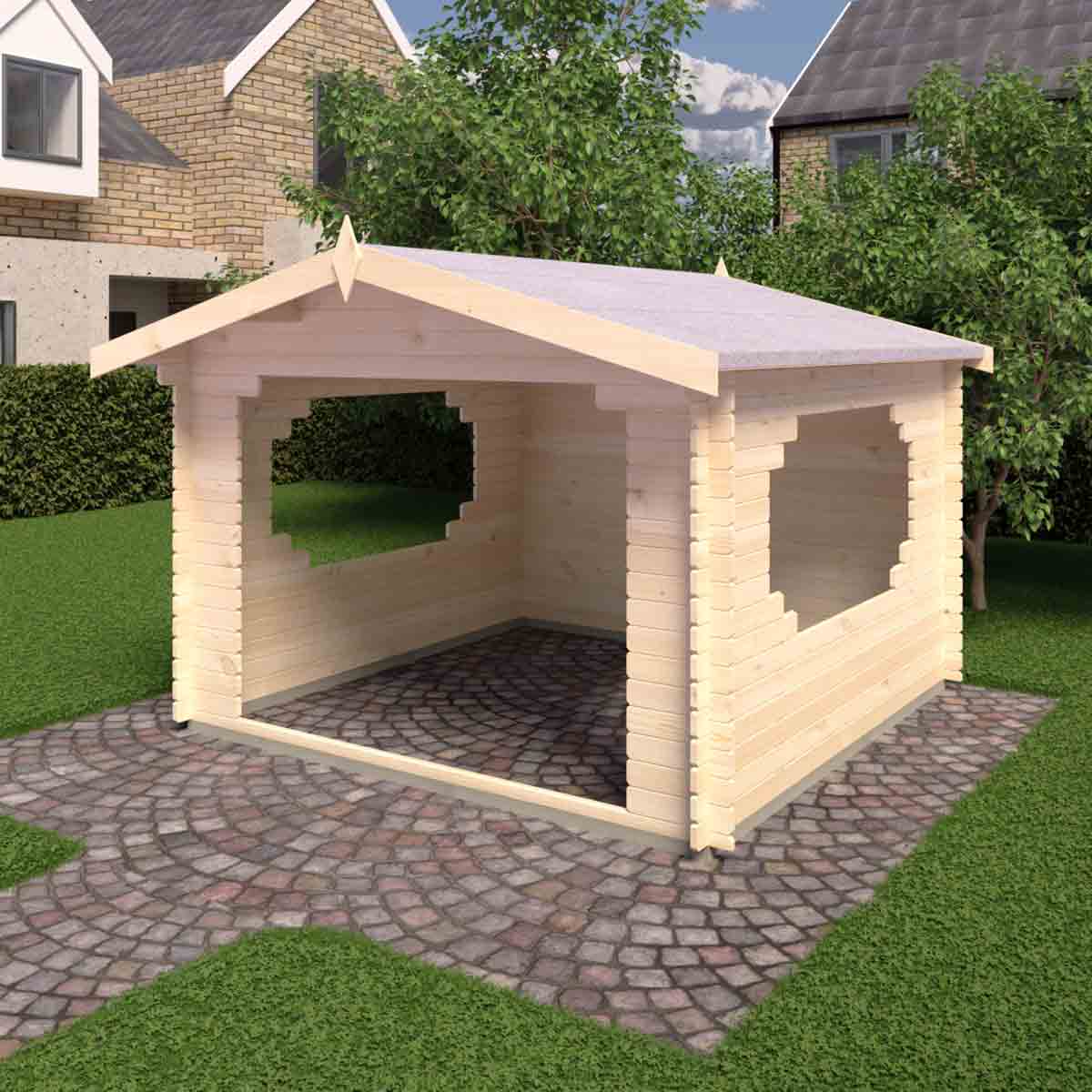 - Practical Design – Including an open frame with a pitched roof, this cabin is perfect for keeping sheltered whilst BBQing or relaxing in the hot tub.