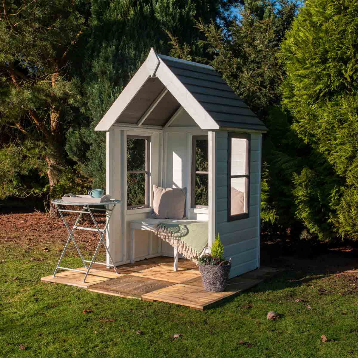 The Almarie Arbour is a beautiful covered bench with glazed opening windows to give you a sheltered seat without obscuring your view. Constructed from top quality pressure treated timber for a longer life over a sturdy 34 mm square frame, this arbor features a 19mm Superlap timber roof.