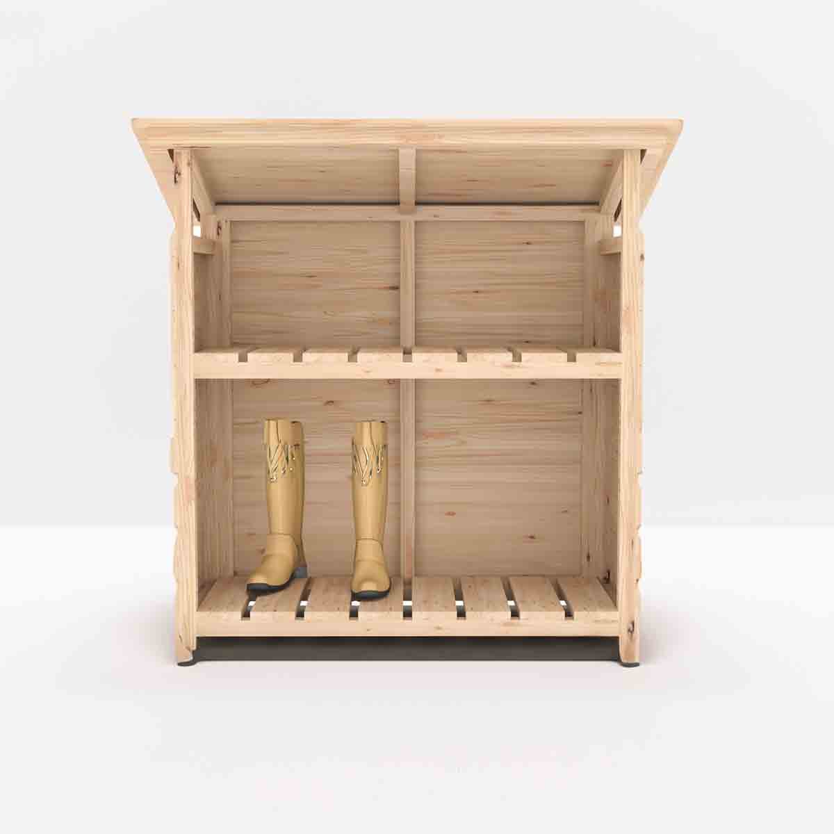 The Aveley Welly Double Store is perfect for keeping lots of your family's footwear tidy! It is supplied in a dip treated base coat preservative ready for you to top coat to your own preference immediately on installation. This should be a good quality wood paint or stain. All fixings and assembly instructions are provided. Following your order, you will be sent a link to choose your delivery day. On the morning of the delivery day you will also receive live tracking information. Painted images are to show what can be achieved with decoration.