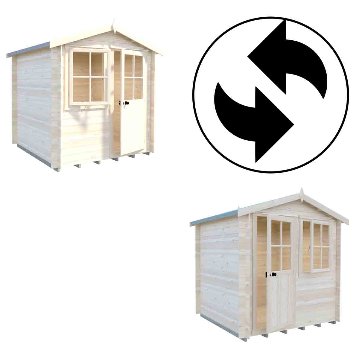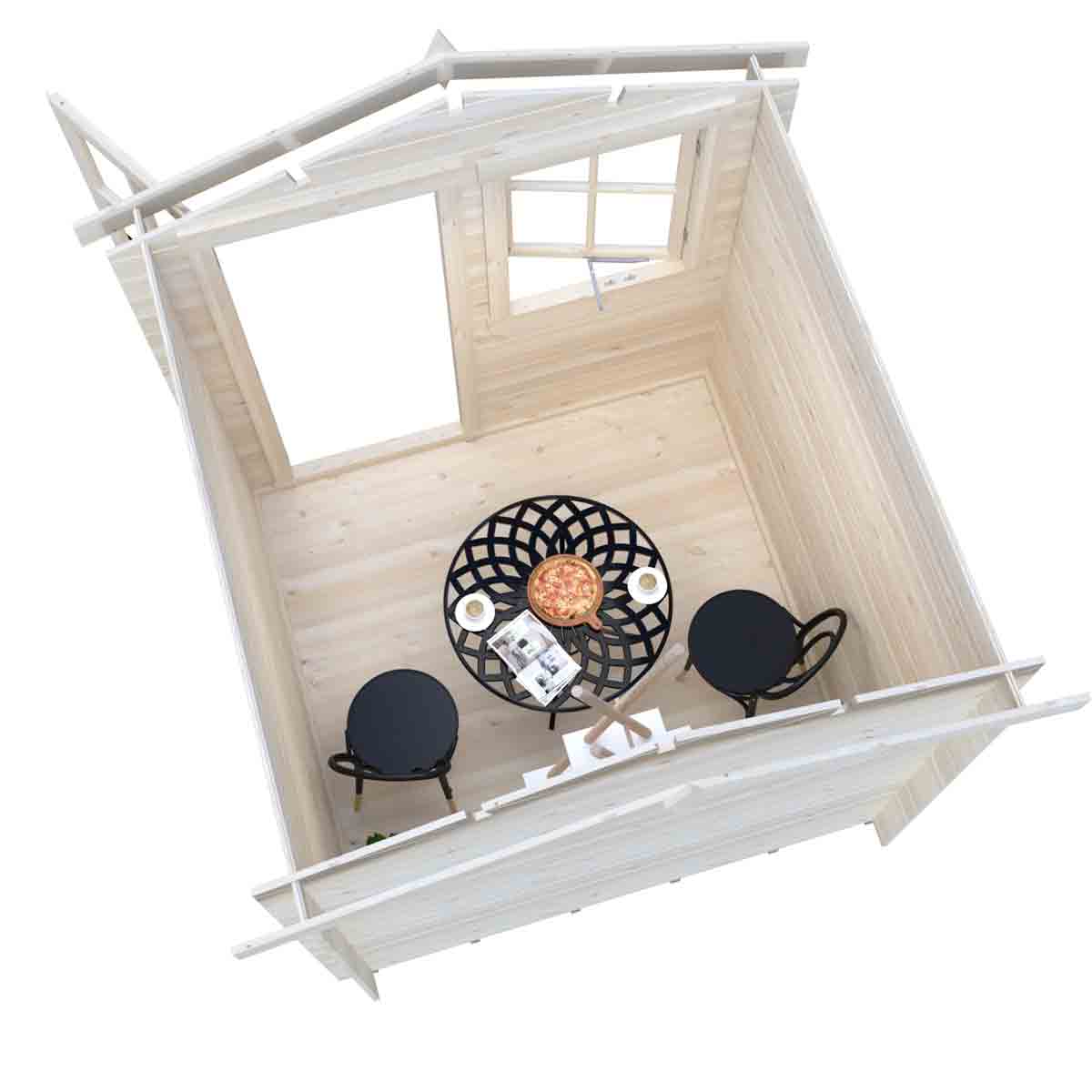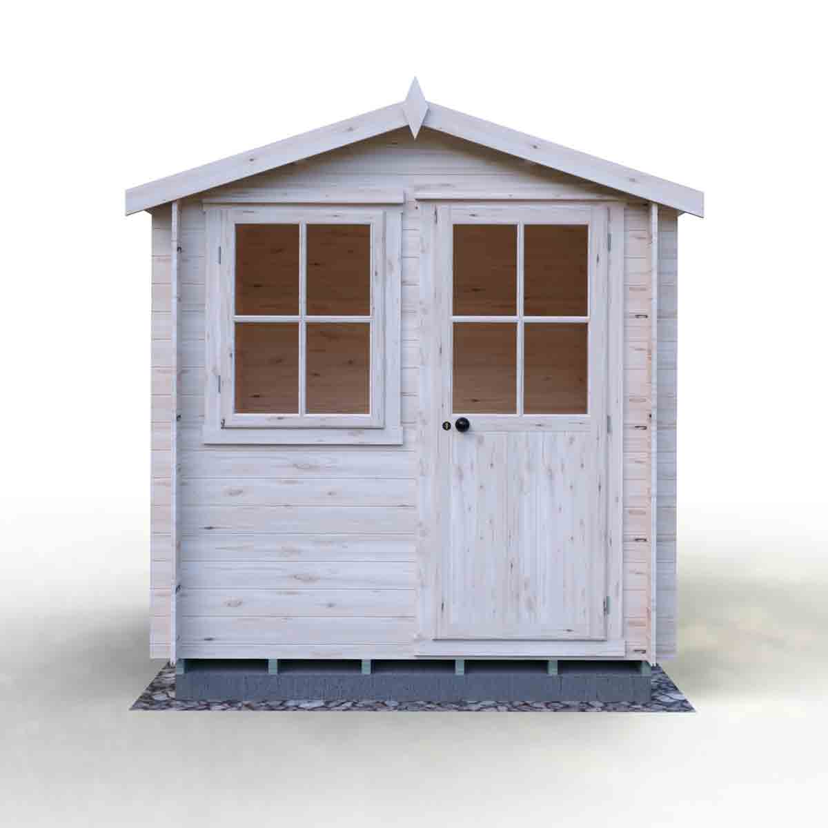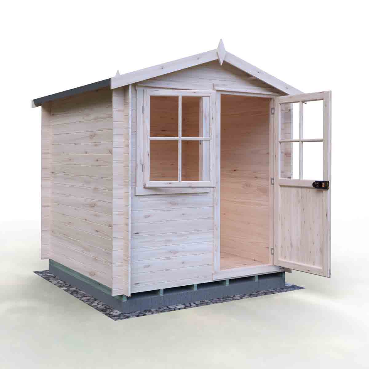 This top-quality 7’ x 7’ log cabin has 19mm interlocking high grade pine boards to the walls and tongue and groove boards to roof and floor.
