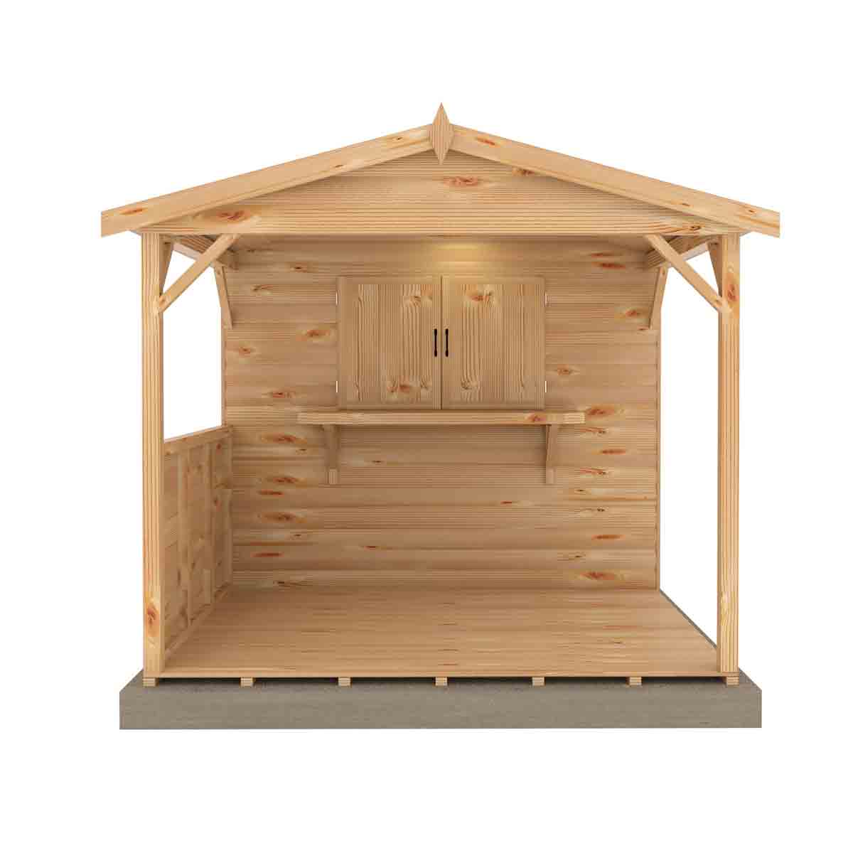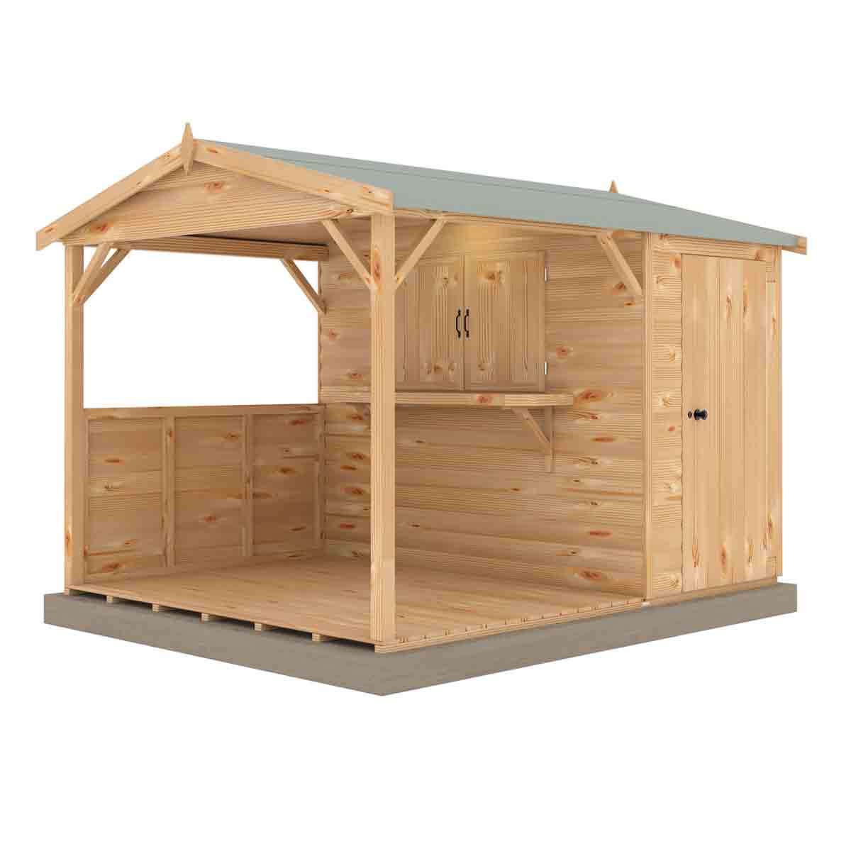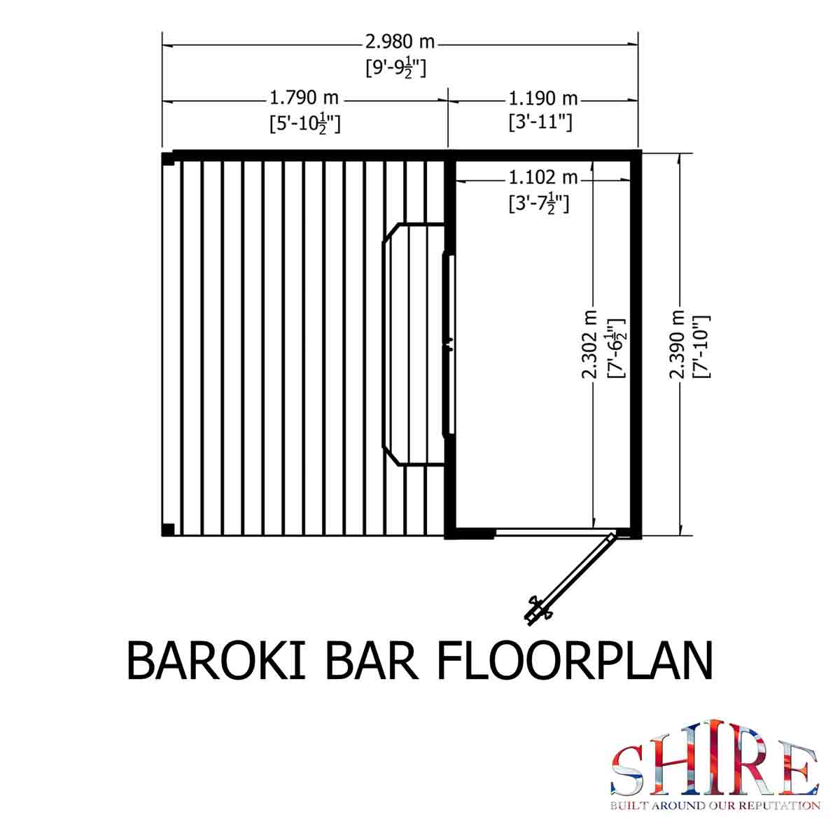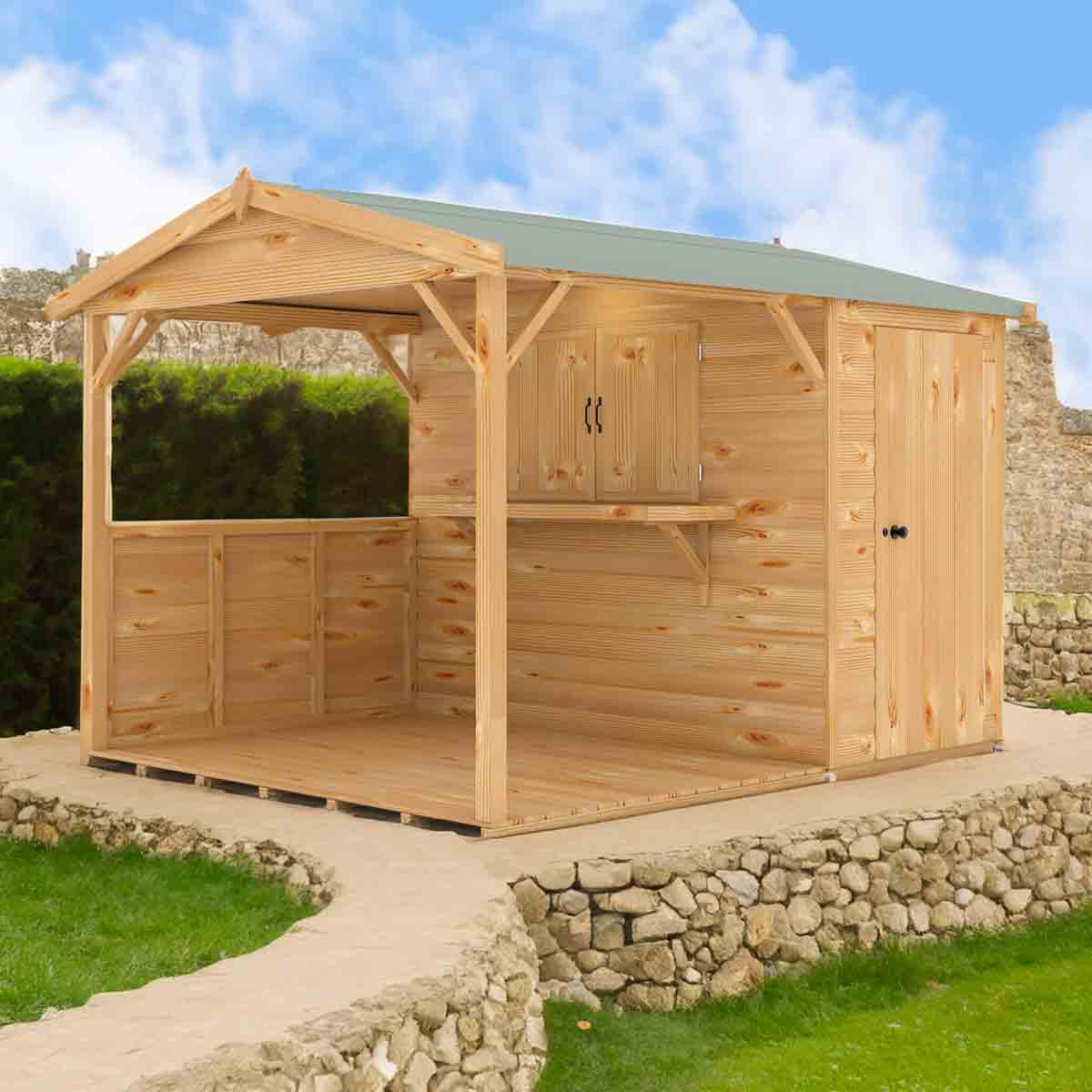 This Baroki Garden Bar is for those who are serious about their partying at home! Made in substantial 19mm Loglap boards over big 44 mm square framing with T&G roof and floor, the Baroki is built to last! The single door is lockable and the building is dip treated with preservative ready for a good quality wood paint or stain after assembly. Whether yours is a Royal Oak, Farmers Arms or a White Horse, you're guaranteed a lot of fun!