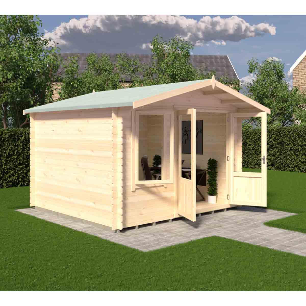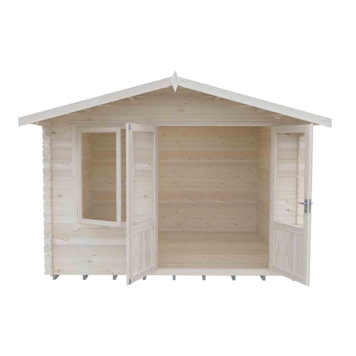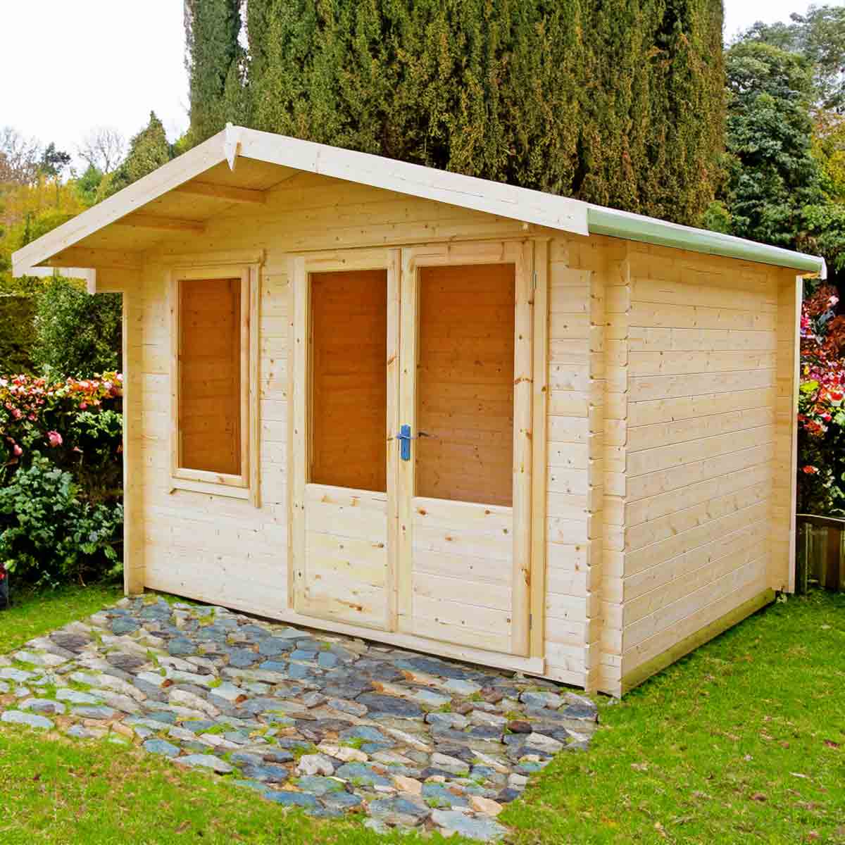 The building is glazed with toughened safety glass for your family's safety. All timber is certified to produce an environmentally friendly and quality garden building. The beauty of a log construction means no framing internally giving you uninterrupted walls and a real log cabin experience.
