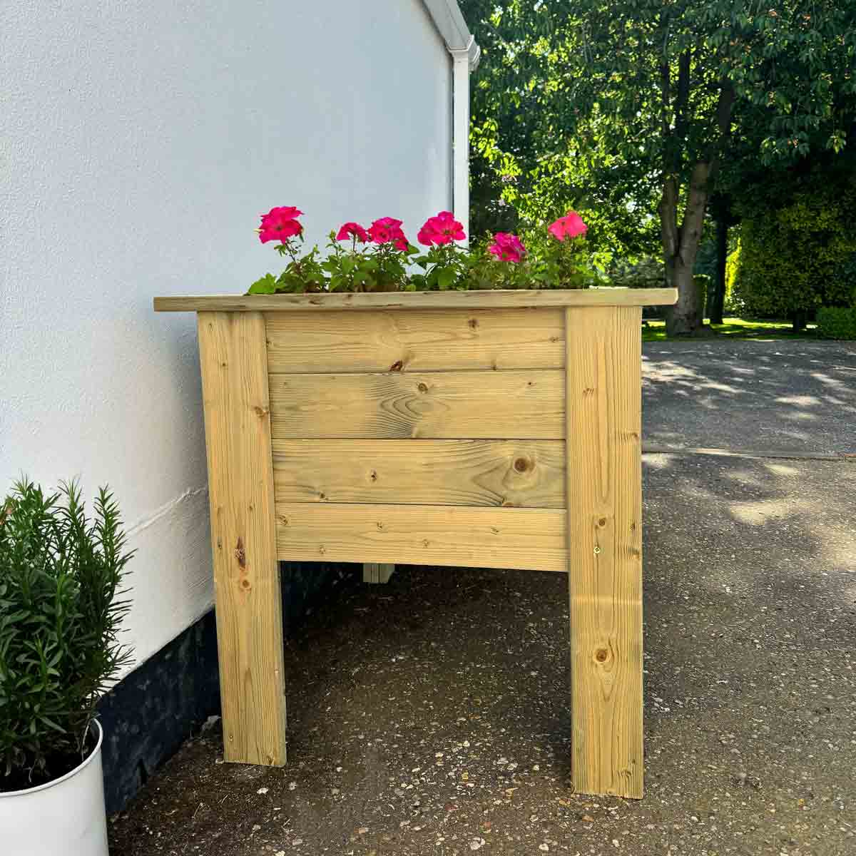 The Shire Bloom deep root planter is made from high-quality pressure-treated timber for durability and resistance to rot and decay for long-lasting use. The Bloom provides good growing space for cultivating deep-rooted vegetables, such as carrots and potatoes, as well as a variety of flowering plants and herbs that thrive in deeper soil. The natural wood finish complements any outdoor decor but can still be painted or stained to suit. The planter is designed for easy assembly, with all necessary panels, fixtures and fittings included, allowing gardeners to easily set it up and start planting.