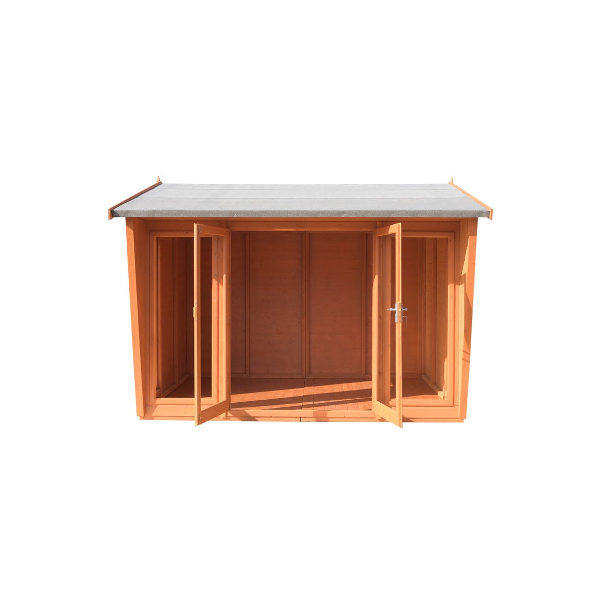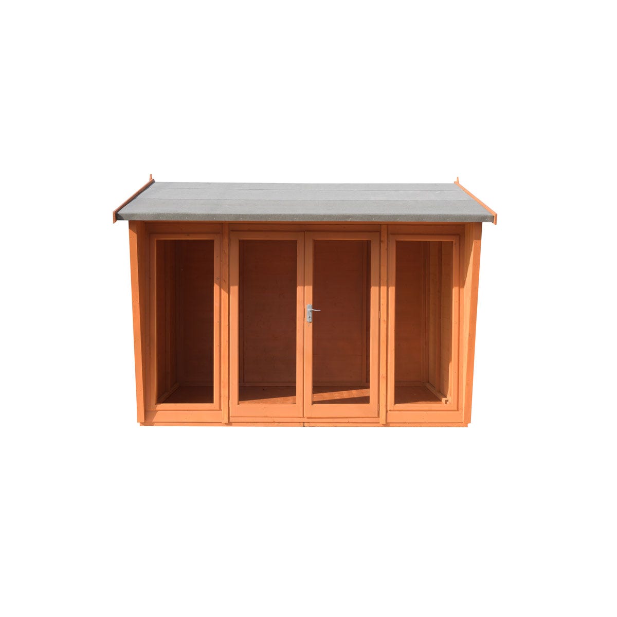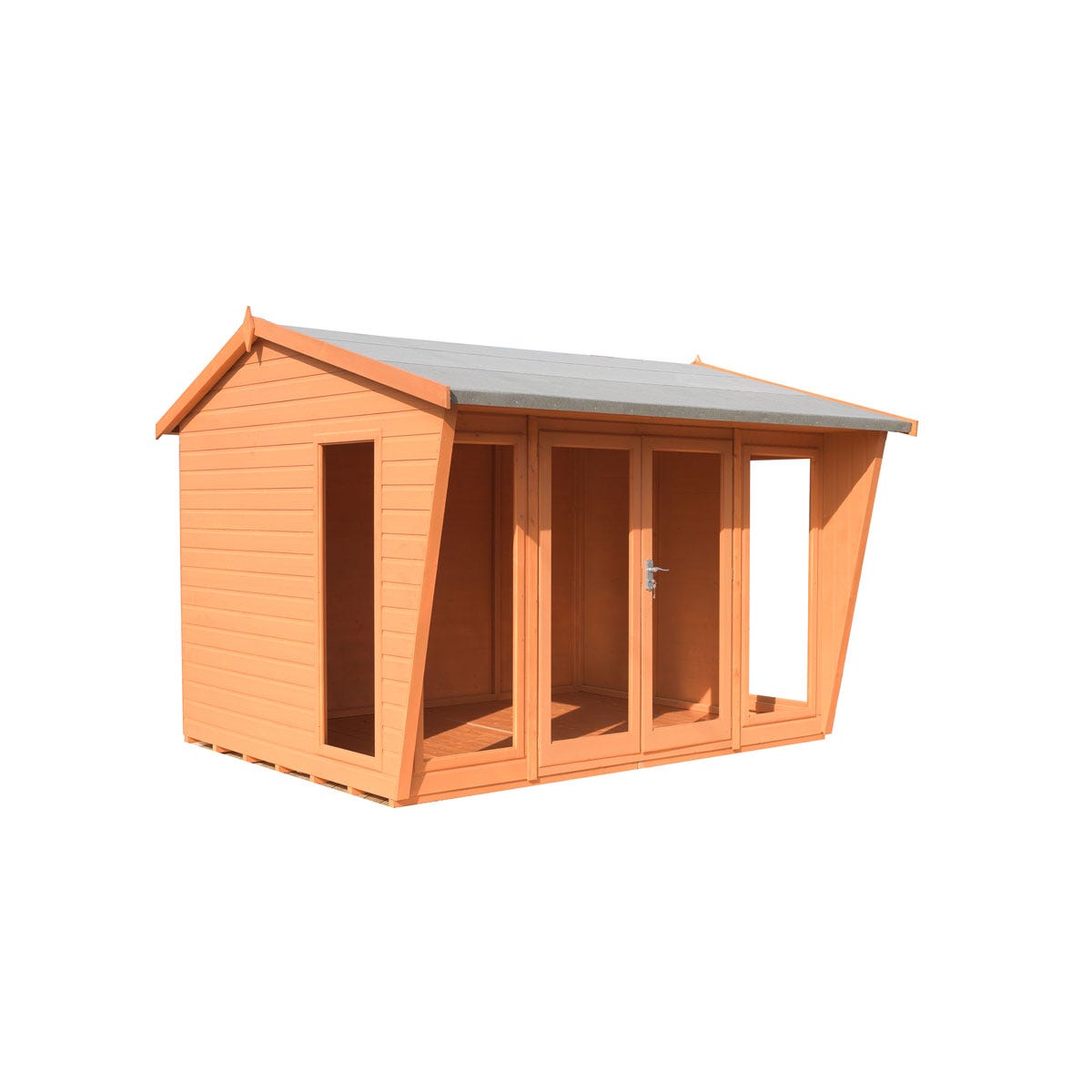 Proudly made in the UK, the contemporary Burghclere Summerhouse is a stunning design updating the traditional summerhouse into a modern garden room. The high quality double doors open out to the front with a small canopy over and there are three large fixed side windows. The windows and doors are fitted with styrene safety glazing and are joinery made in a storm resistant design. The doors are also fitted with a mortice lock. The building is constructed on strong 34mm square framing and clad with planed shiplap tongue and groove boards made only from the highest grade, slow grown, slow grown pine. The floor and roof are 12mm T&G with mineral roof felt supplied to complete the roof exterior. The summerhouse is supplied with a dip treated base coat preservative ready for you to top coat to your choice immediately on installation; this could be a paint or a stain. When siting, allowance should be made for the roof overhang and access for painting and during installation. Following your order, you will be sent a link to choose your delivery day. On the morning of delivery day you will also receive live tracking information. Before you assemble your building, you will need a base which is flat and level to a sufficient size. Grass, soil or gravel are not sufficient as they will move with the weight of a building.