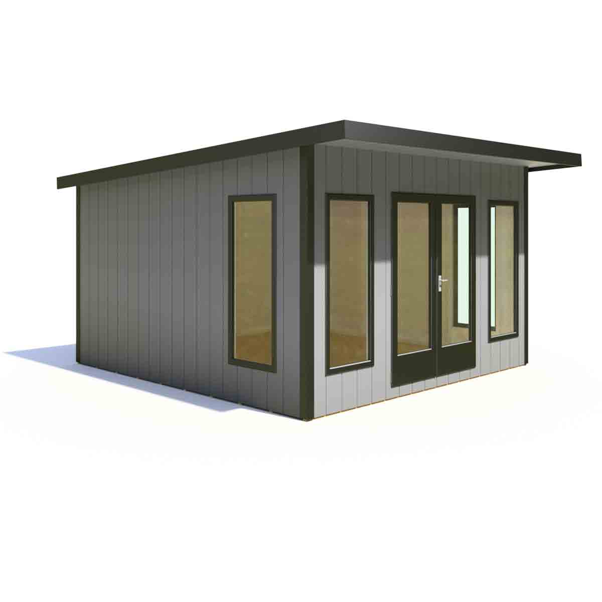 All windows are opening. The construction itself is as impressive as it looks. The external cladding is an engineered wood board resistant to moisture, each wood strand is individually treated with advanced binders and wax. Each panel is treated throughout with our proprietary zinc borate based process to help resist fungal decay and insect damage. The cladding sits on 70 x 44 mm framing to give a sturdy construction. The floor is 20mm T&G, fully insulated with 25mm Celotex and finished internally with the attractive herringbone effect vinyl.