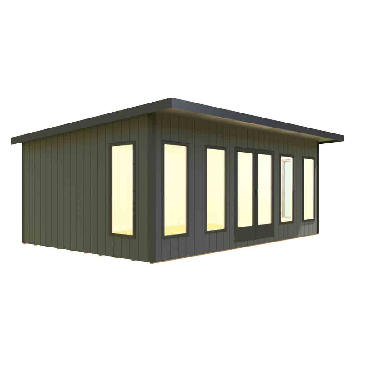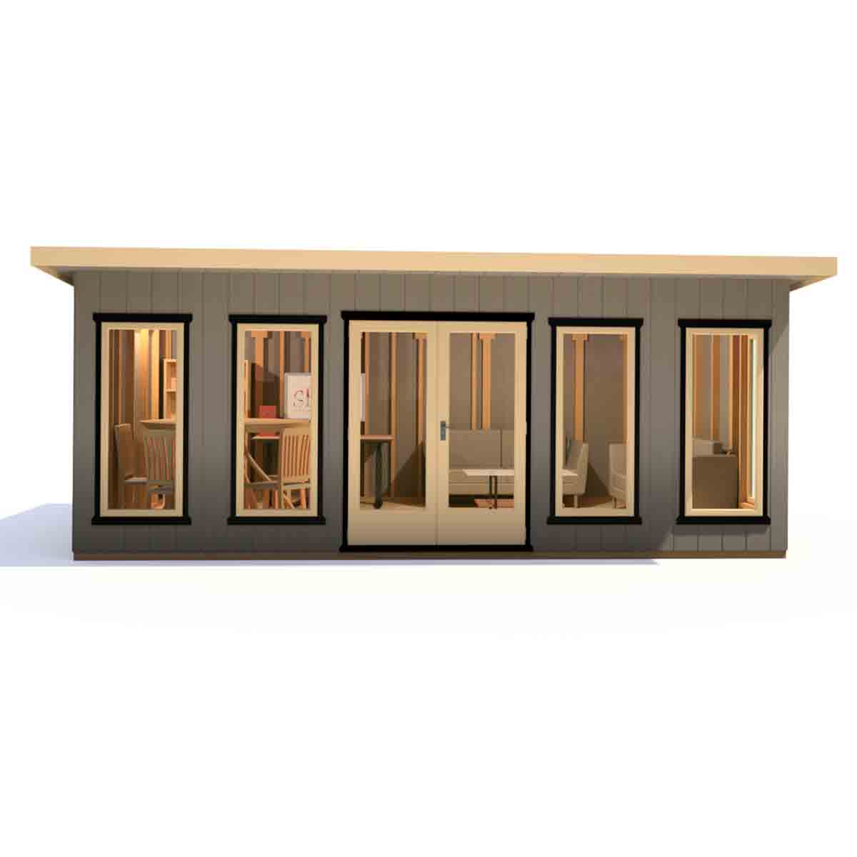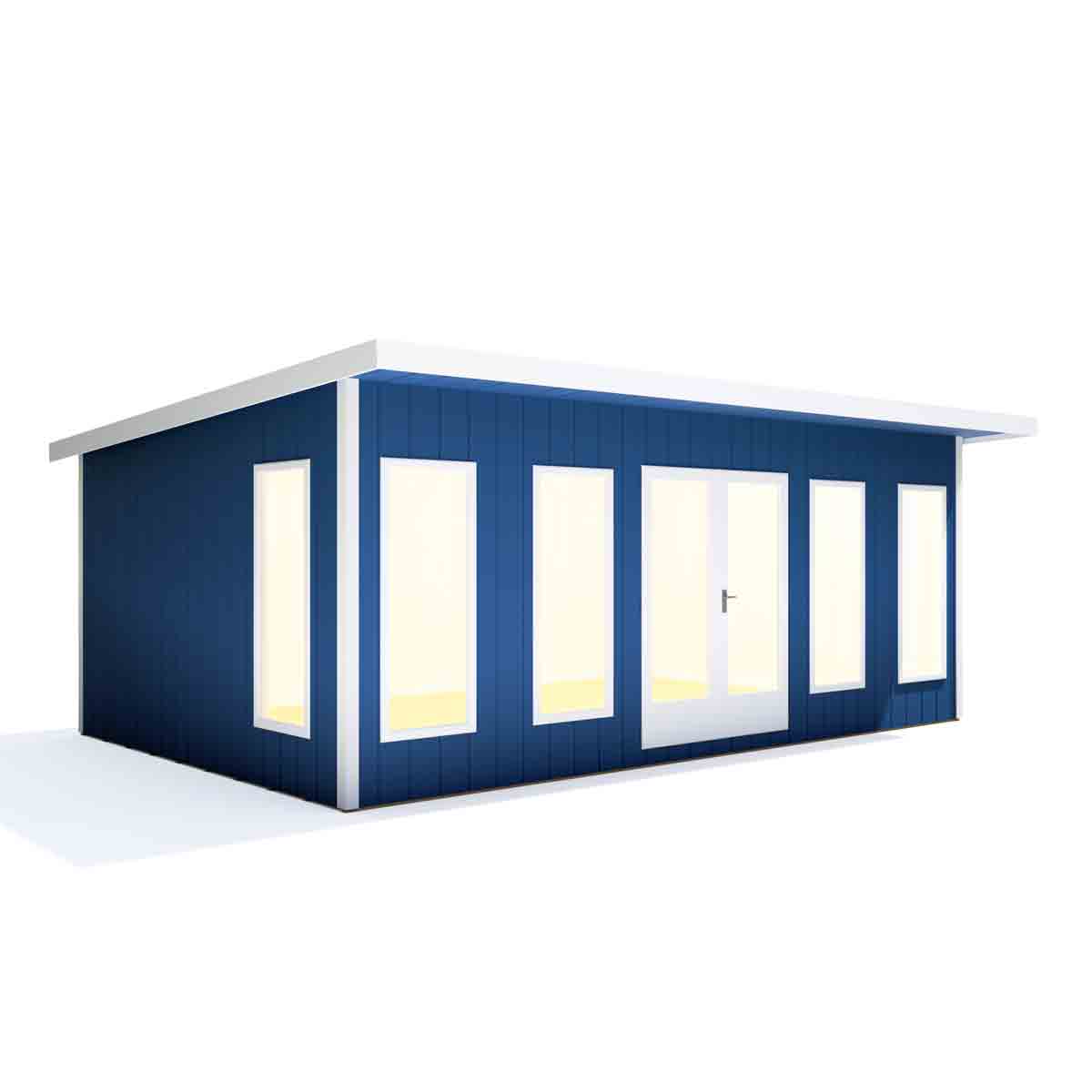Externally the roof is 11mm OSB Board finished with 1.2mm EPDM rubber roof that carries a 50-year guarantee, internally it features 23mm of insulation finished with 12mm of MDF. All the internal cladding is MDF, moisture-resistant board, grooved to imitate classic cladding. The internal wall and roof insulation consists of YBS Airtec Double, a highly reflective aluminium foil with a durable laminated surface on either side of an air bubble membrane which effectively acts as a Vapour Control. This has an R-Value of 1.45. There is a lovely choice of paint colours which will ensure your new office will be the envy of your neighbours! The Cali Home Office is an investment for your home and ideal whether working or as an all-year-around extra room.