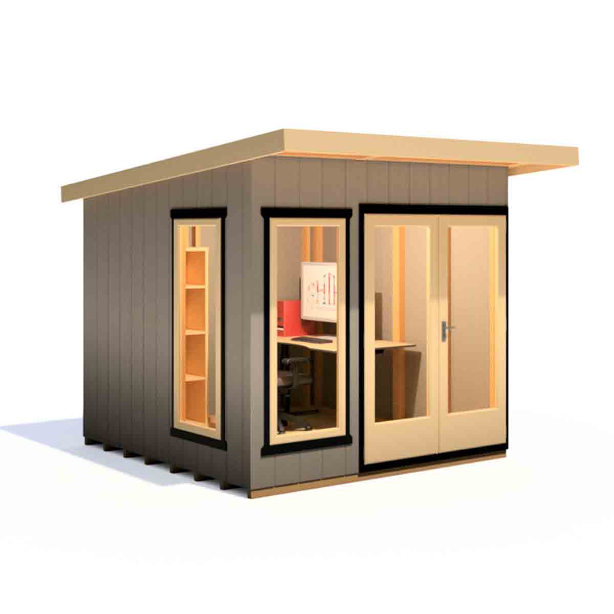The Cali Home Office is a high-spec garden building to gives you valuable additional workspace. This is a turn-key office, painted externally and internally, fully insulated, double glazed and complete with a Herringbone effect vinyl floor, all fully installed onto your ready-prepared base.