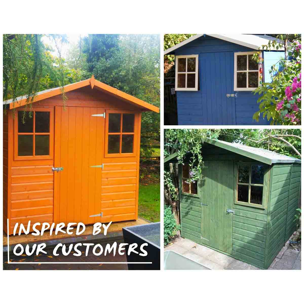 Allowance should be made for the roof overhang and for access around the outside during construction and subsequent treatment. (Painted building pictured is for display only, it is delivered base coat treated only)