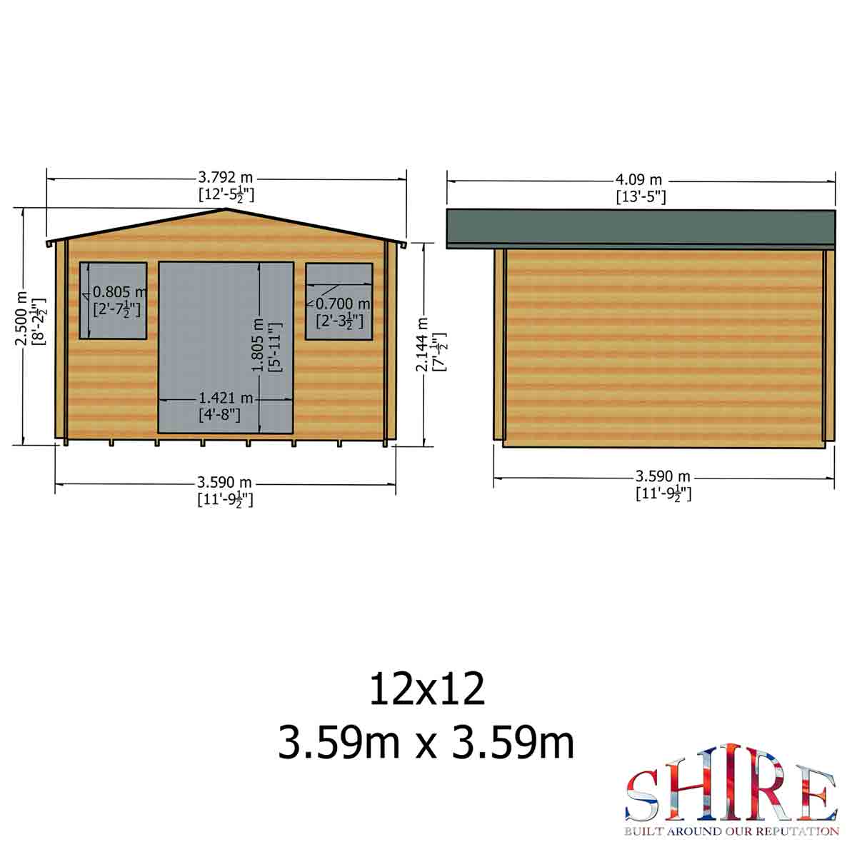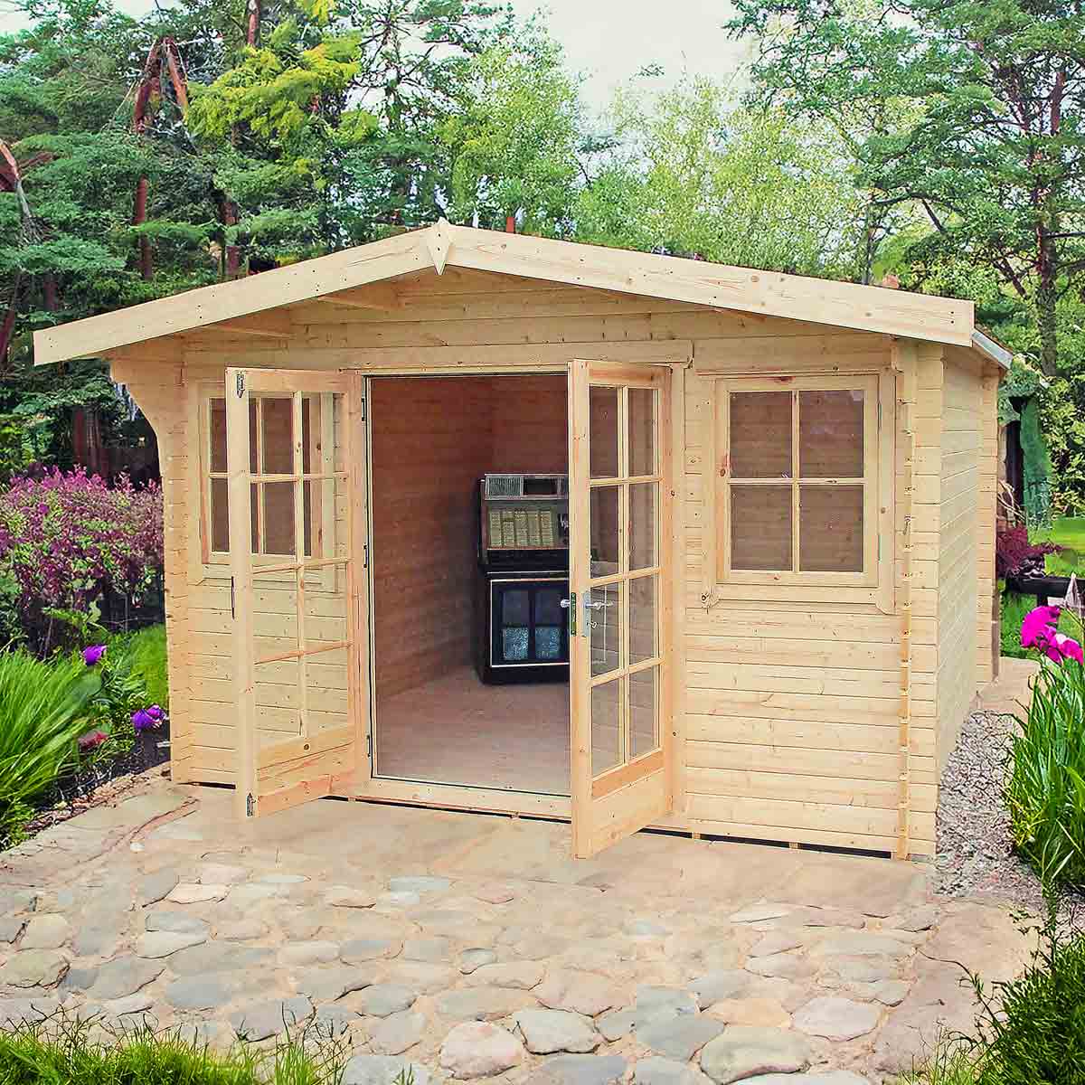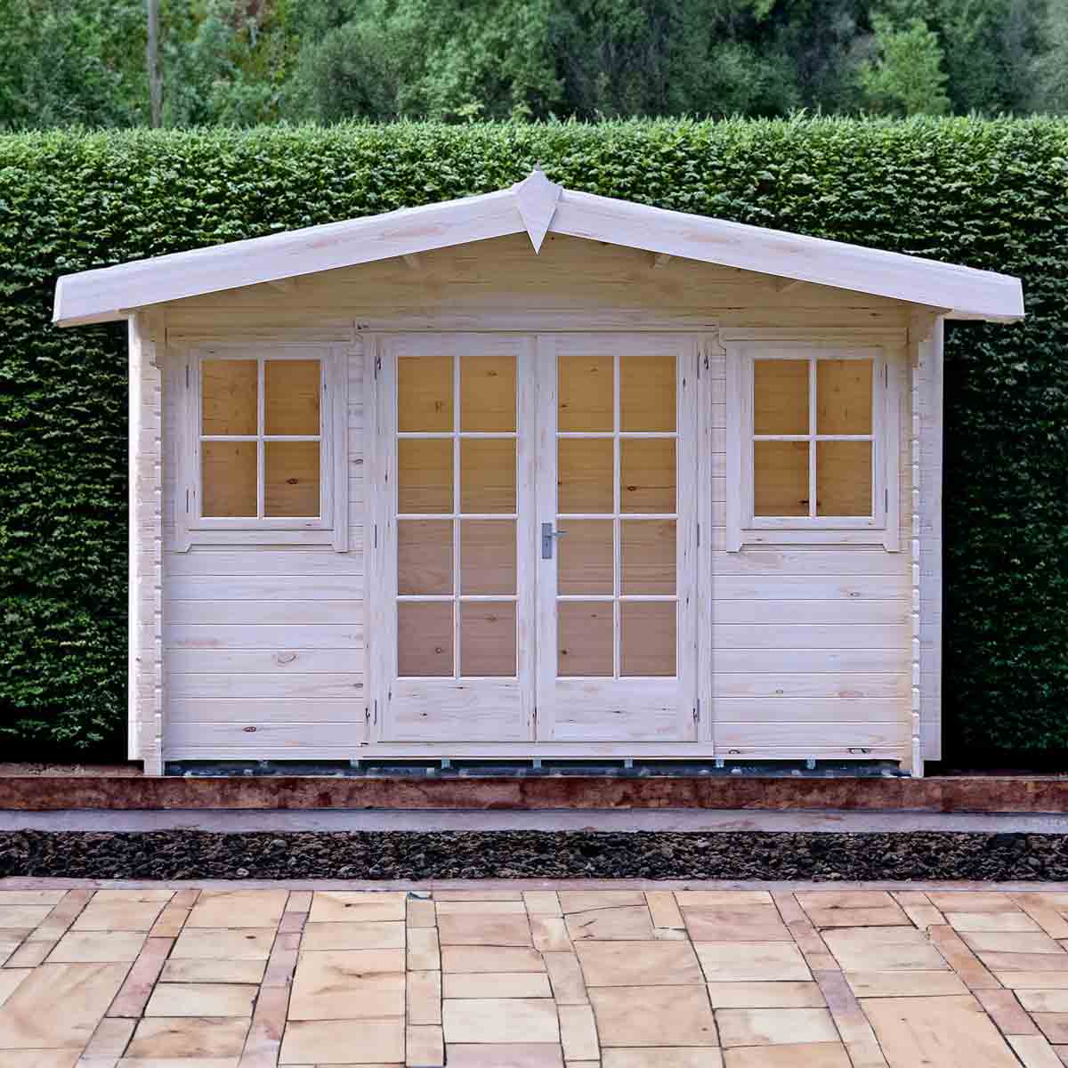 The interlocking timbers that make up the walls of the building are an impressive 28 mm thick. Internal eaves height is 6'10 / 2.086 m for a really spacious interior. The building is supplied untreated ready for you to paint or stain immediately after assembly with a good quality wood paint or stain. Where dimensions are critical please check internal (floor) sizes as building dimensions are to the external edge of the individual boards that make up the cabin and will include the crossover of the logs.