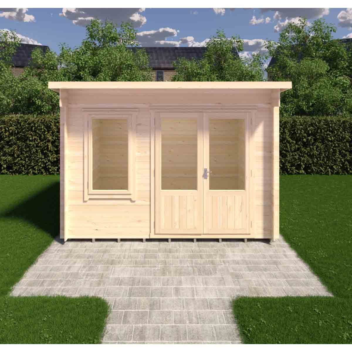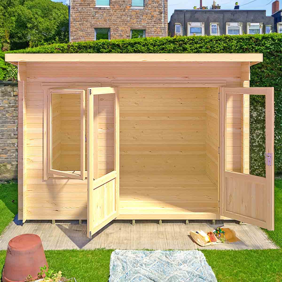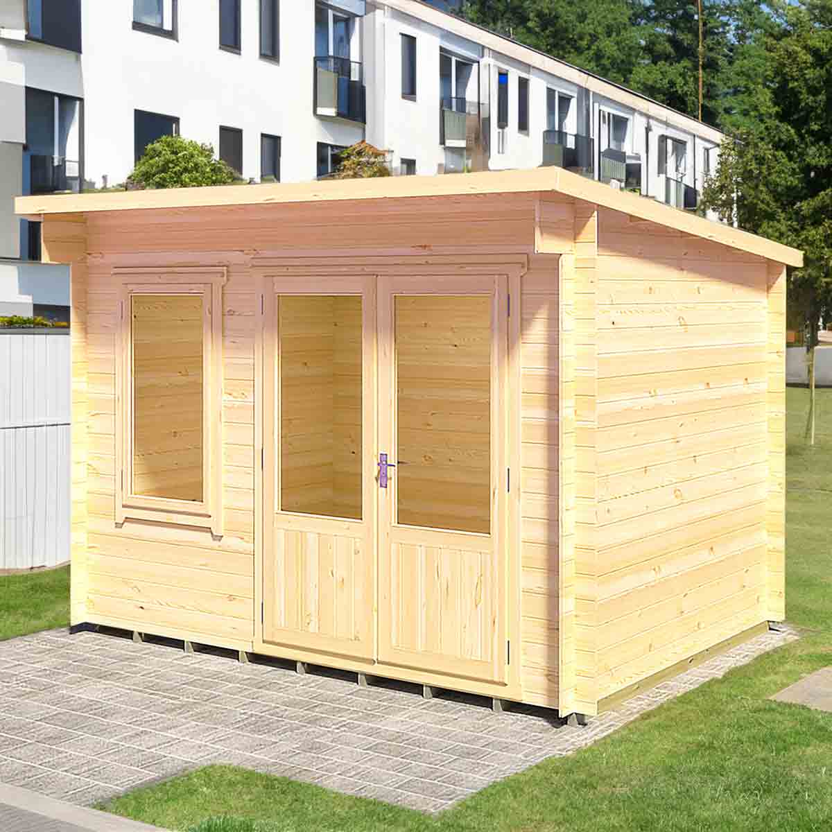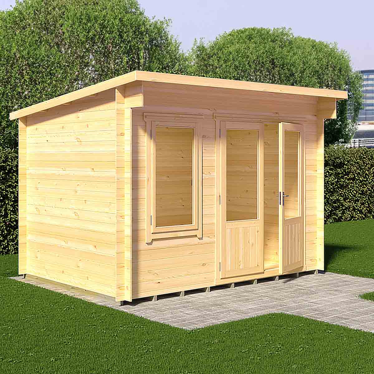 The building is supplied untreated ready for you to paint or stain immediately after assembly. Where dimensions are critical please check internal (floor) sizes as building dimensions are to the edge of the individual boards that make up the cabin and will include the crossover of the logs. Internal eaves height is over 6' (1825mm) for a really spacious interior. Please note that log cabins are supplied as individual log boards that are assembled length by length, building up from the floor; not pre-made panels.