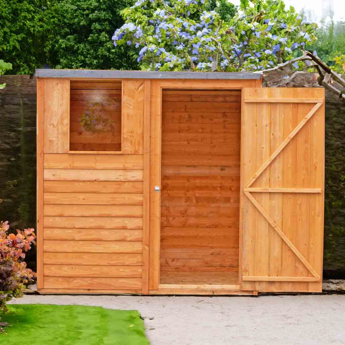 Part of our Garden Value range of overlap sheds. This Pent shed is a very practical design and manufactured from high grade, slow grown, approved, North European pine overlap cladding boards over sturdy 34mm square framing with OSB roof and floor. With one fixed, acrylic window.
