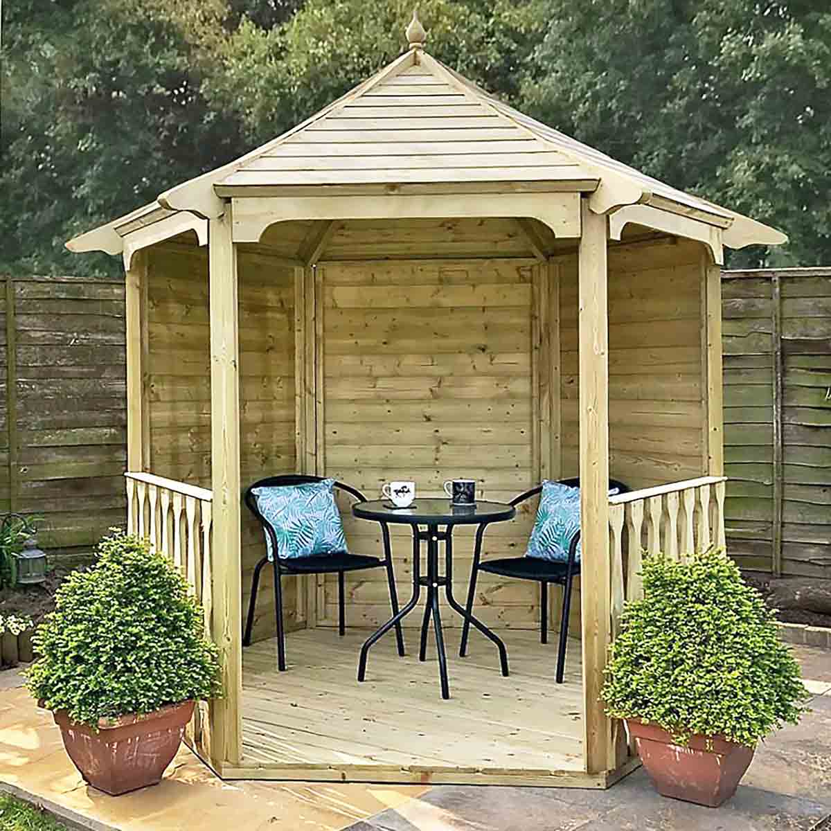 This beautiful pagoda-style garden arbour will make a stunning centrepiece in any home. The attractive hexagonal design is both elegant and striking, while the spacious interior provides plenty of space for seating so that you can relax on your own or socialise with friends and family. Made from high-grade, pressure-treated pine, it’s protected from both rot and insect attacks for long-lasting quality, and you can be confident it’s been sourced responsibly.