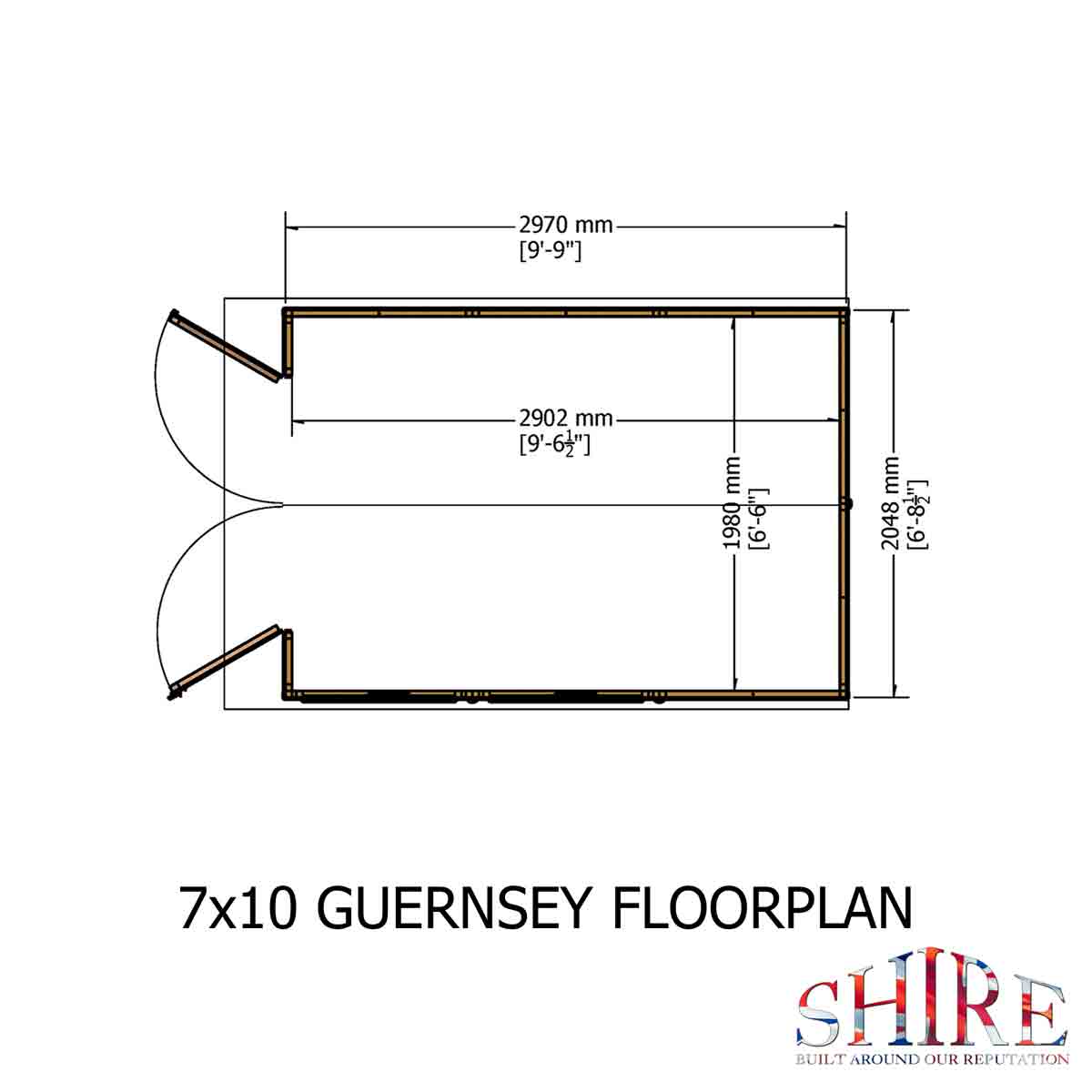 NB: Allowance should be made for the roof overhang and for access around the outside during construction and subsequent treatment