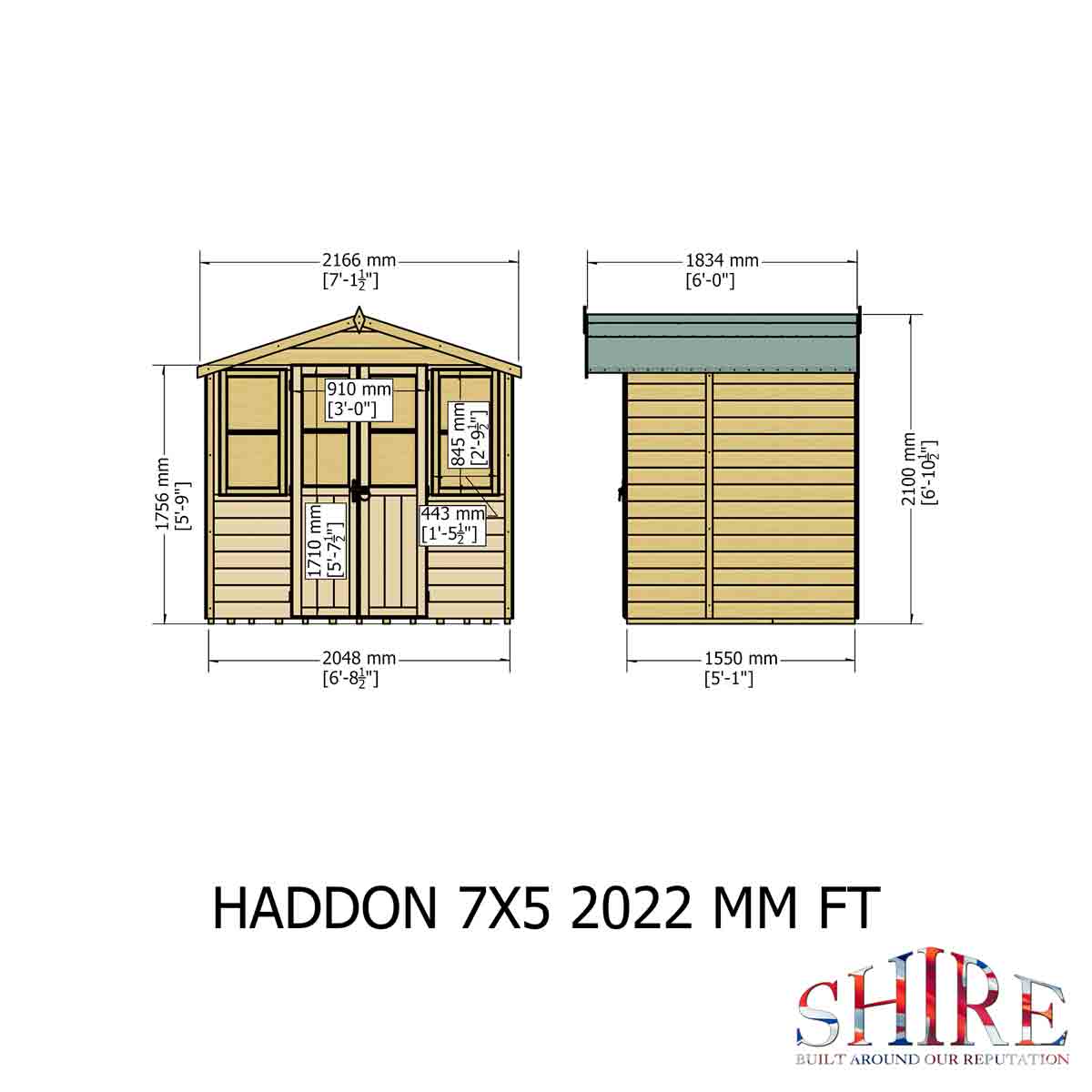 - Clad with planed 12mm Shiplap boards