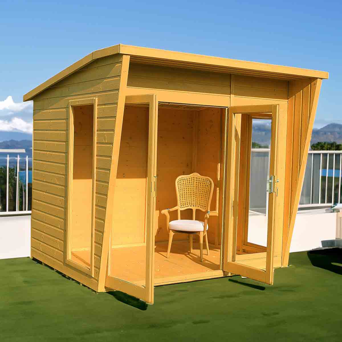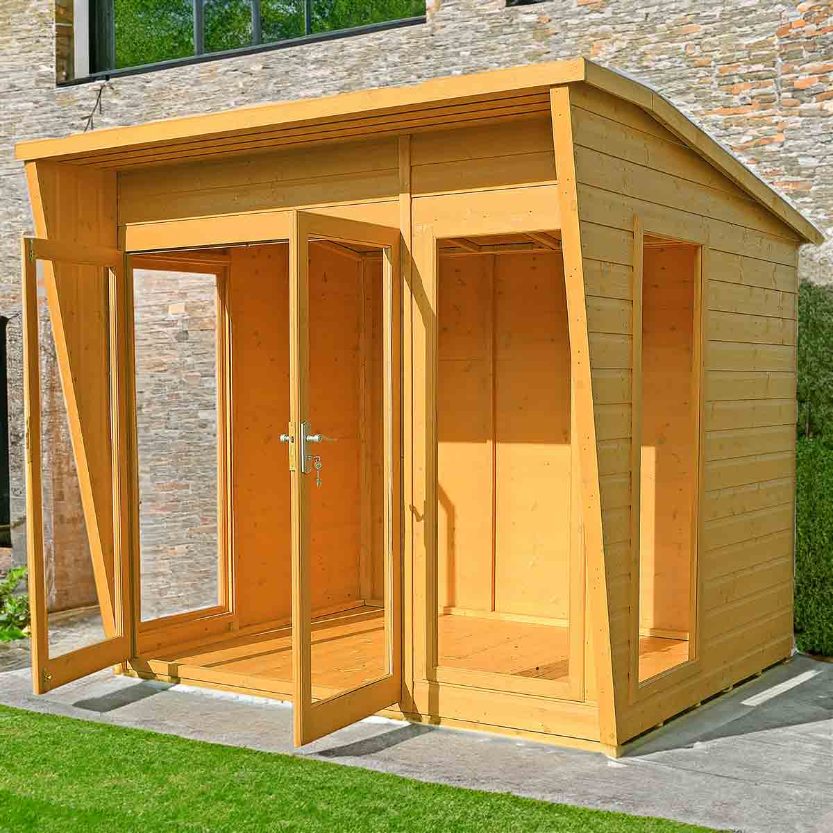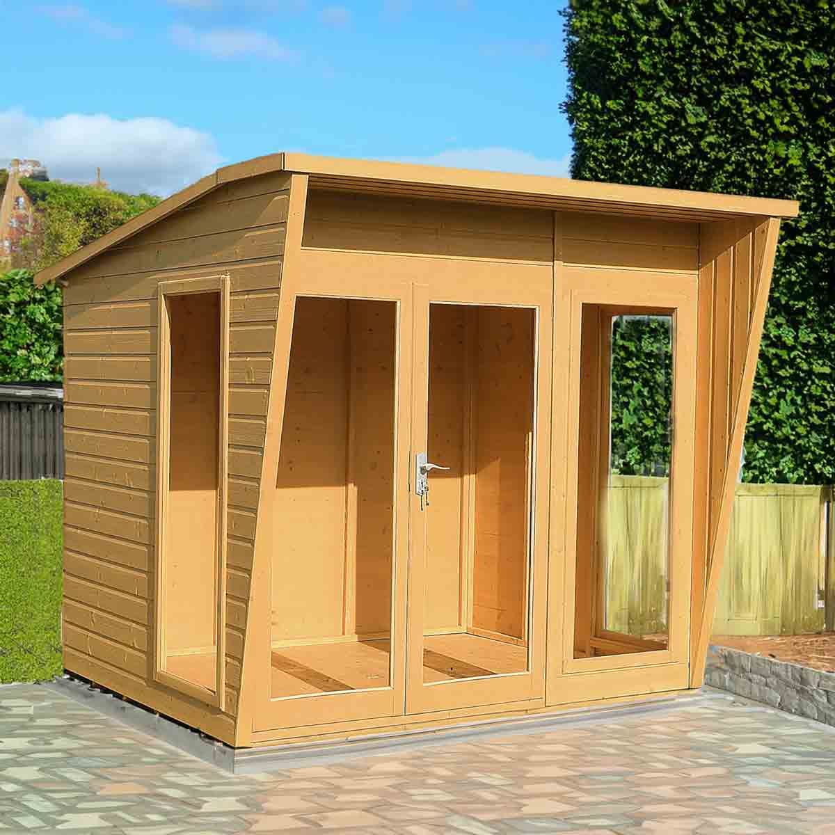 The contemporary Highclere 8’ x 8’ Summerhouse is a stunning design updating the traditional summerhouse into a modern garden room.