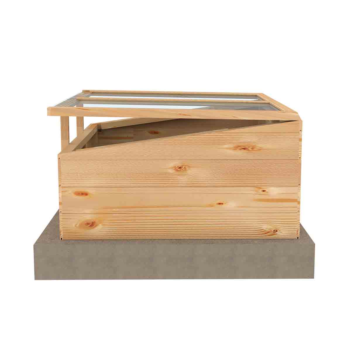 The Holkham cold frame is made in Britain from high grade, pressure treated pine. The cold frame is 4 ft x 3 ft and features an opening, glass lid which will extend your growing season. No floor is supplied. All fixings and assembly instructions are provided. Imperial measurements are rounded so please refer to the metric sizes for accuracy.
