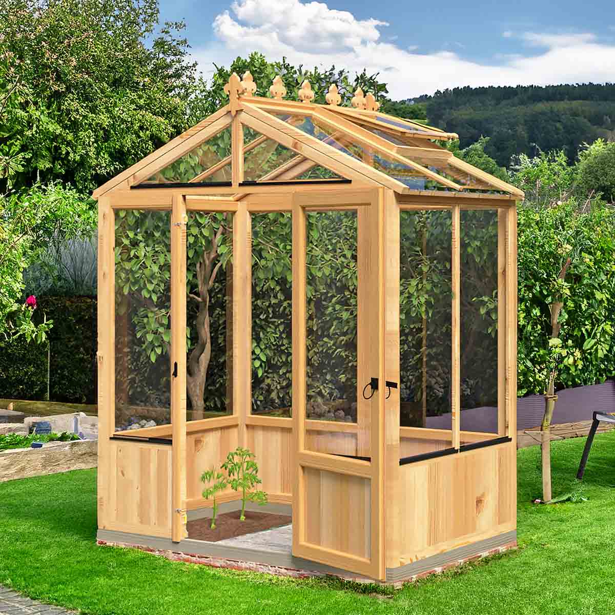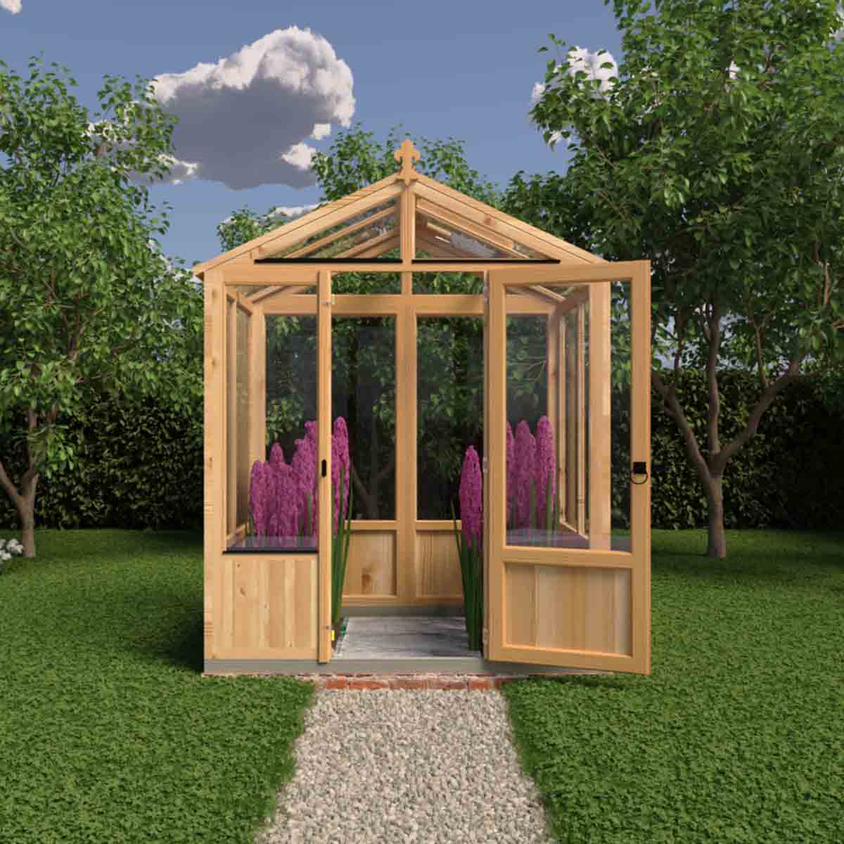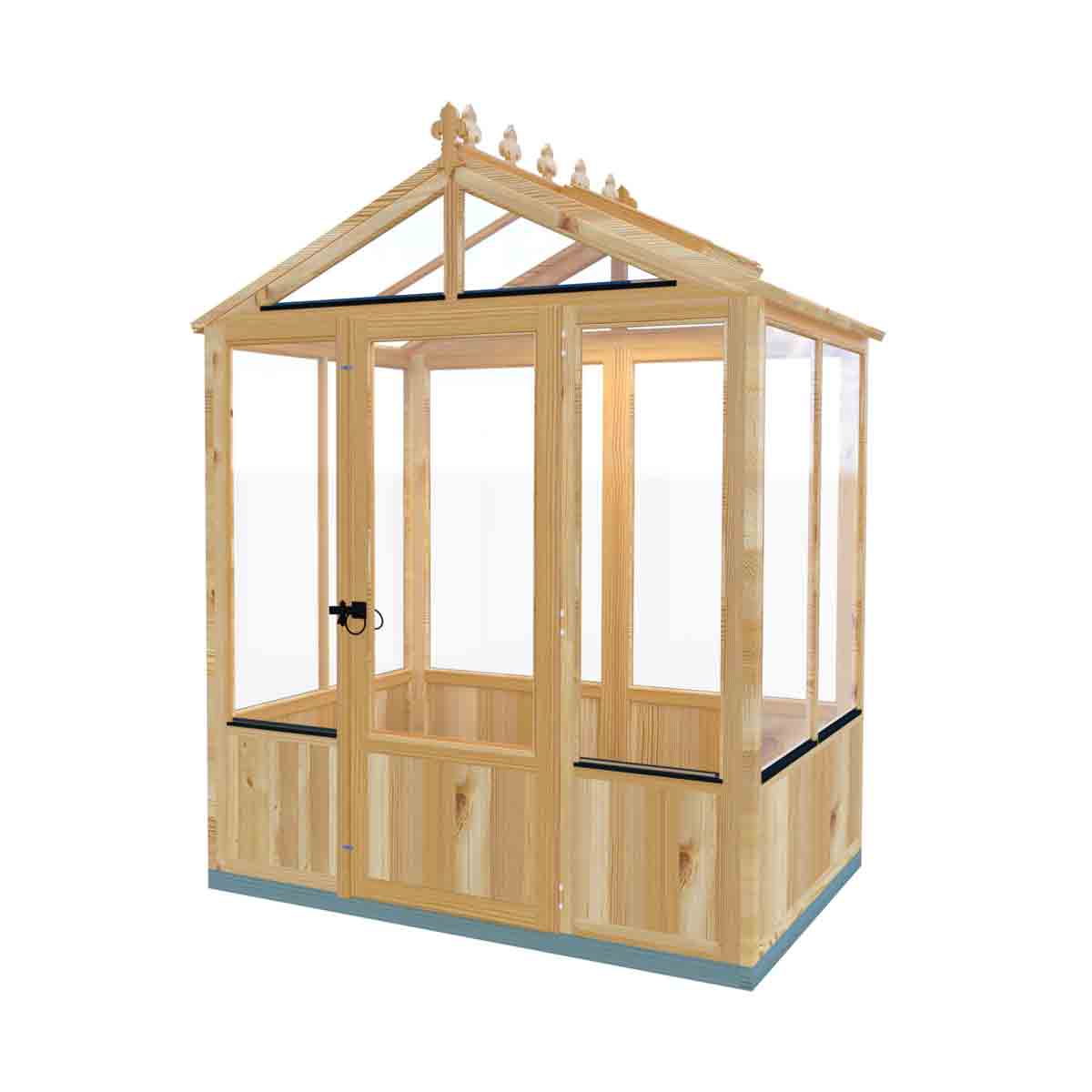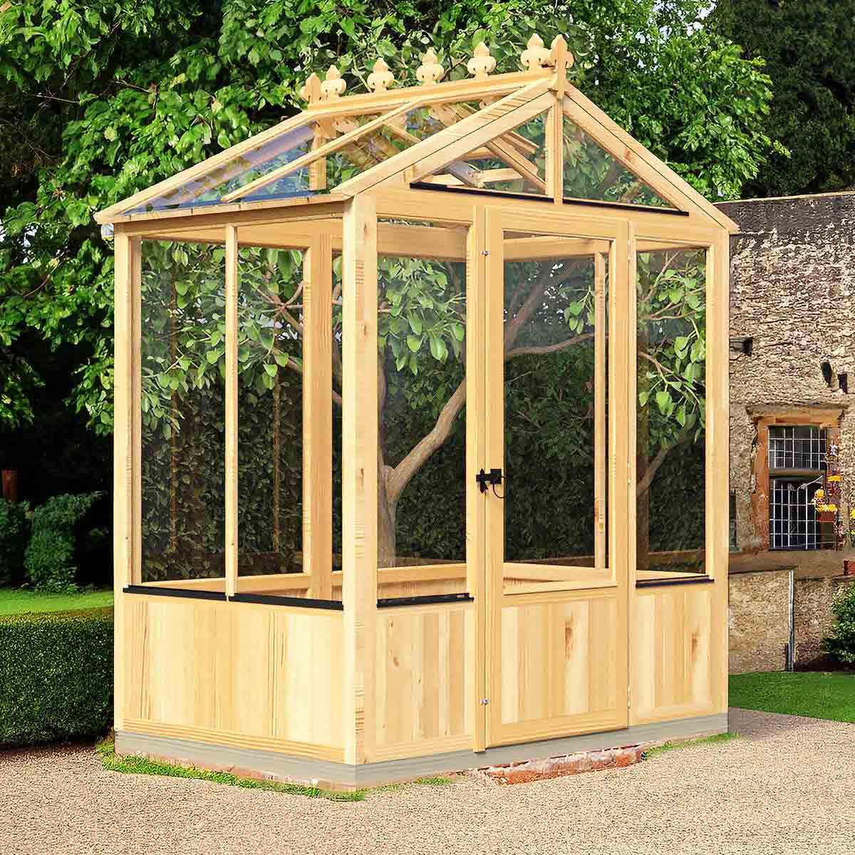 The Holkham is a stunning greenhouse available in a range of sizes to suit everyone. A wooden greenhouse has many advantages for gardeners and will also provide you with a relaxing environment to potter in. Featuring Shire's quality joinery and completed with an attractive finial and cresting to the roof, the Holkham is both practical as well as charming. The low wooden panels also add a very traditional detail to this lovely building. The greenhouse is glazed with toughened glass and has a single door with traditional gate latch handle. Roof windows have an automatic Bayliss opener supplied. The number of roof windows per model is, one in the 4 x 6, two in a 6 x 8, three in a 6 x 12 and four in a 6 x 16. As usual with a greenhouse, no floor is supplied and the greenhouse sits on a pressure treated base rail. Manufactured in the UK from high grade Northern European, timber and finished with a honey brown basecoat preservative treatment ready for your own top coat of wood paint or stain following assembly. All fixings and assembly instructions are provided. Imperial measurements are rounded so please refer to the metric sizes for accuracy. Allowance should be made for the roof overhang and for access around the outside during construction and subsequent treatment. Following your order, you will be sent a link to choose your delivery day. On the morning of delivery you will also receive live tracking information. Before you assemble your greenhouse , you will need a base which is flat and level to a sufficient size. Grass, soil or gravel are not sufficient as they will move with the weight of a building.