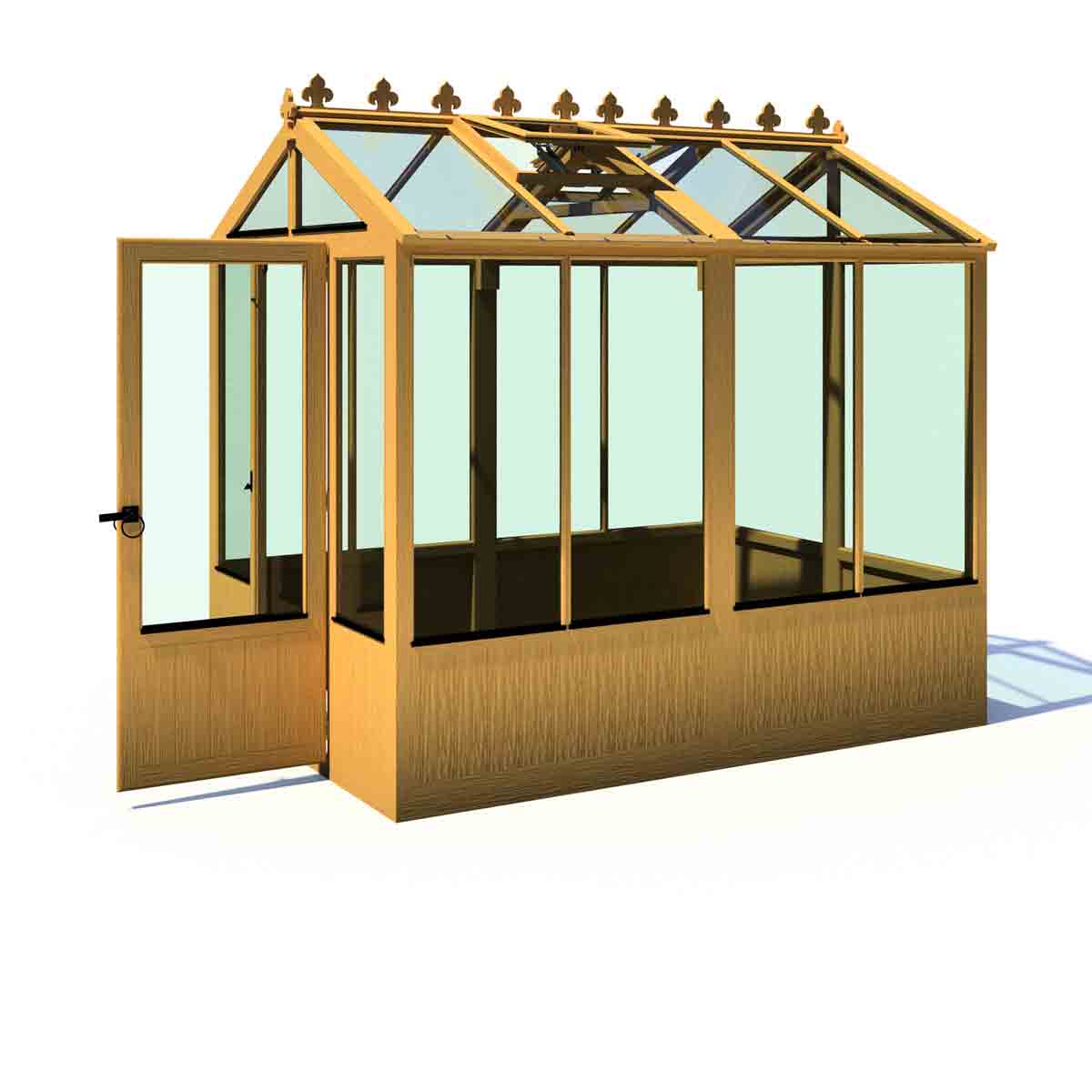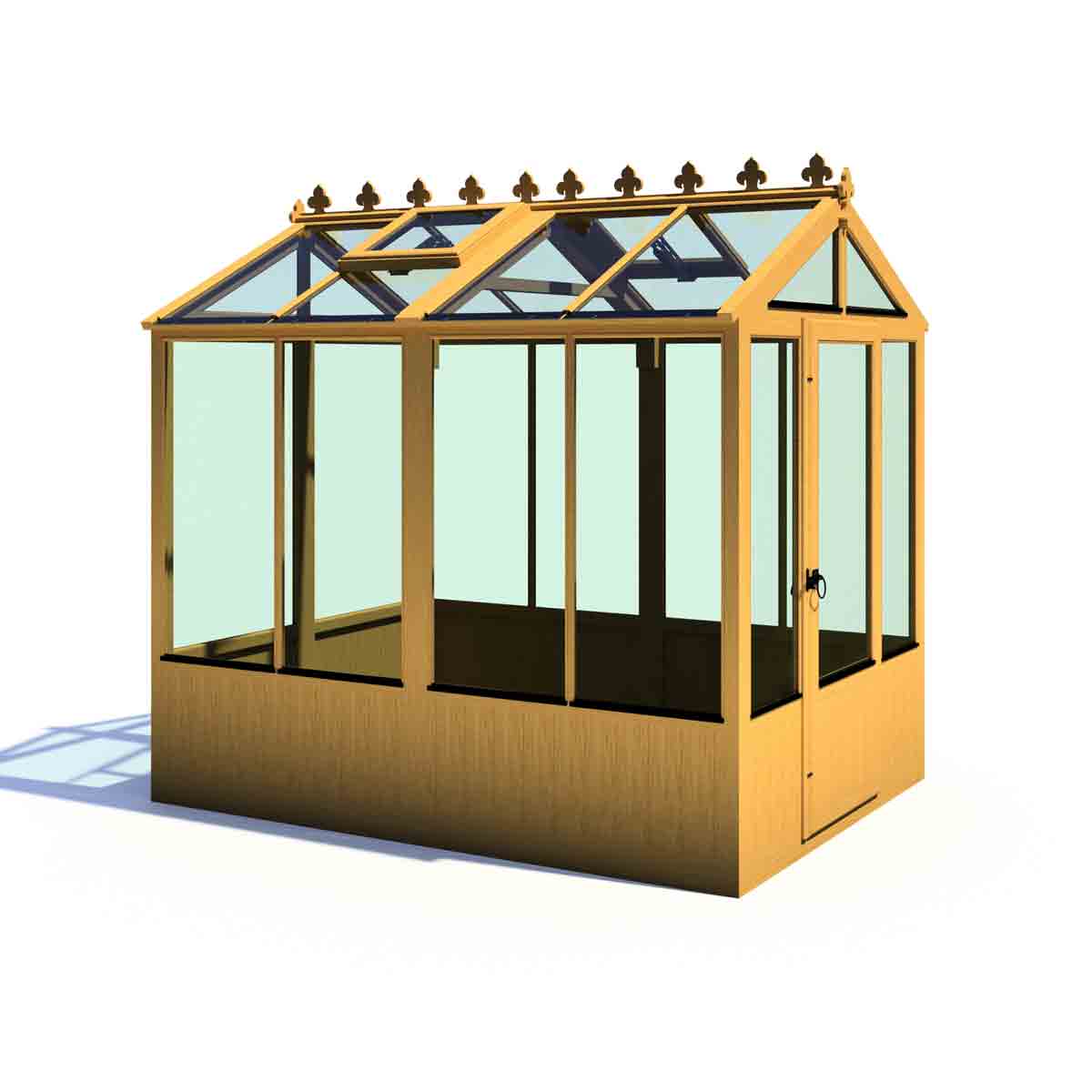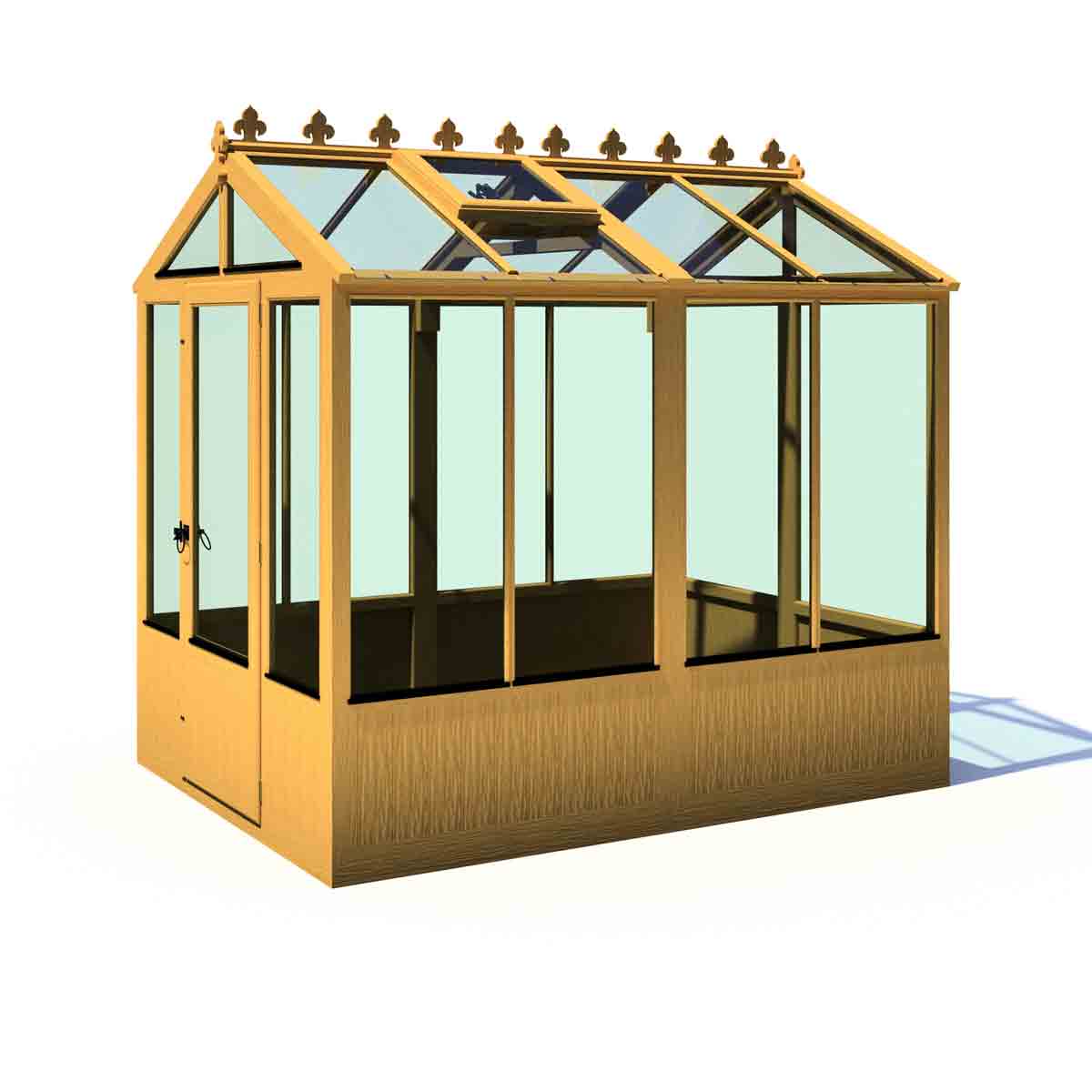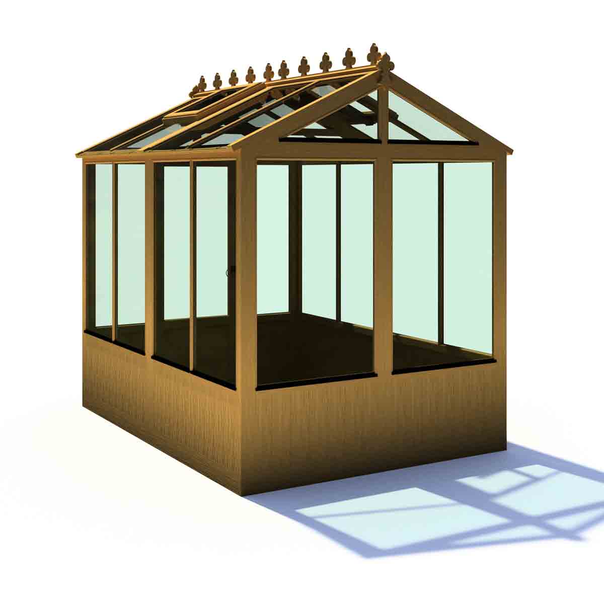 The Holkham is a stunning greenhouse available in a range of sizes to suit everyone. A wooden greenhouse has many advantages for gardeners and will also provide you with a relaxing environment to potter in. Featuring Shire's quality joinery and completed with an attractive finial and cresting to the roof, the Holkham is both practical as well as charming. The low wooden panels also add a very traditional detail to this lovely building. The greenhouse is glazed with toughened glass and has a single door with traditional gate latch handle. Roof windows have an automatic Bayliss opener supplied. The number of roof windows per model is, one in the 4 x 6, two in a 6 x 8, three in a 6 x 12 and four in a 6 x 16. As usual with a greenhouse, no floor is supplied and the greenhouse sits on a pressure treated base rail. Manufactured in the UK from high grade Northern European, timber and finished with a honey brown basecoat preservative treatment ready for your own top coat of wood paint or stain following assembly. All fixings and assembly instructions are provided. Imperial measurements are rounded so please refer to the metric sizes for accuracy. Allowance should be made for the roof overhang and for access around the outside during construction and subsequent treatment. Following your order, you will be sent a link to choose your delivery day. On the morning of delivery you will also receive live tracking information. Before you assemble your greenhouse , you will need a base which is flat and level to a sufficient size. Grass, soil or gravel are not sufficient as they will move with the weight of a building.