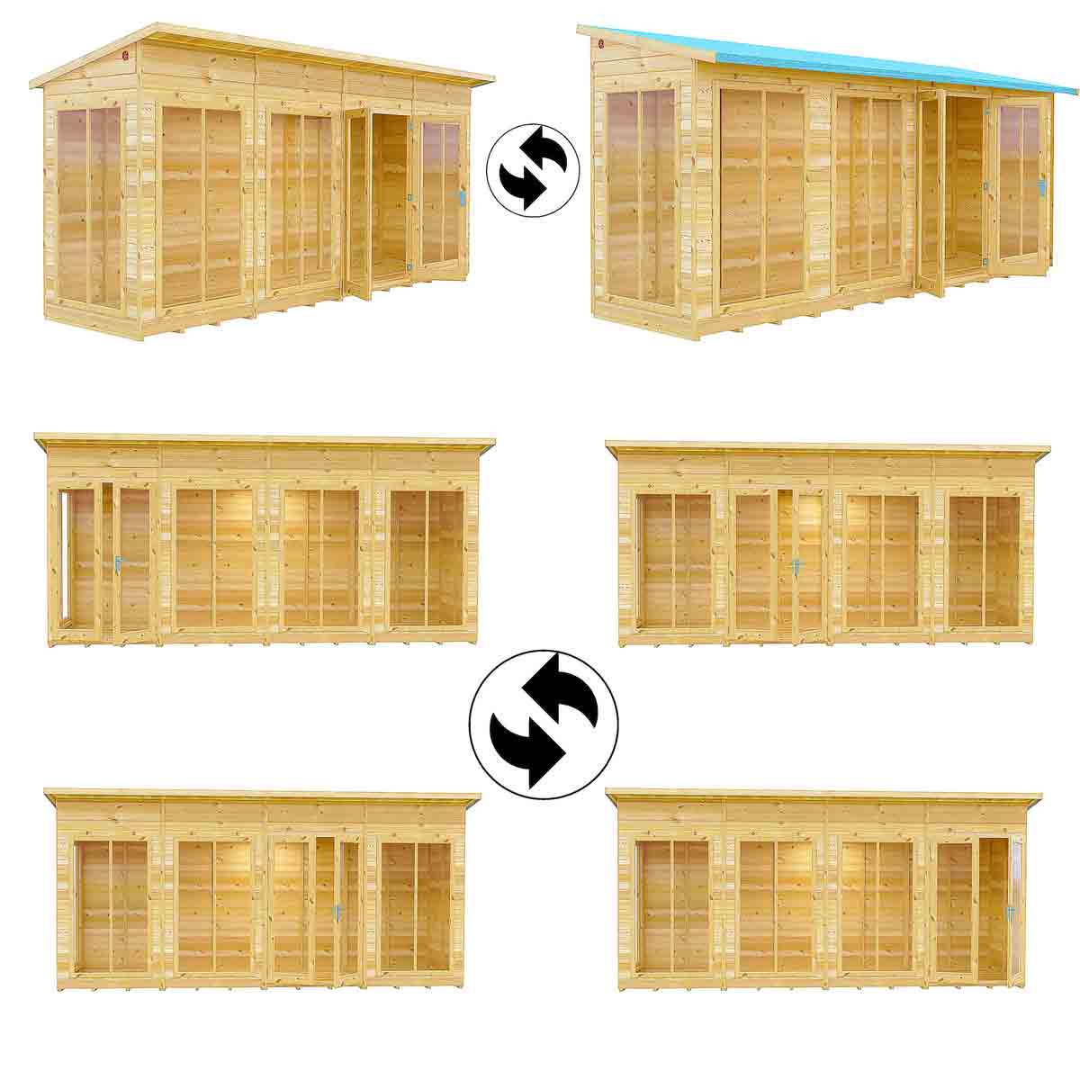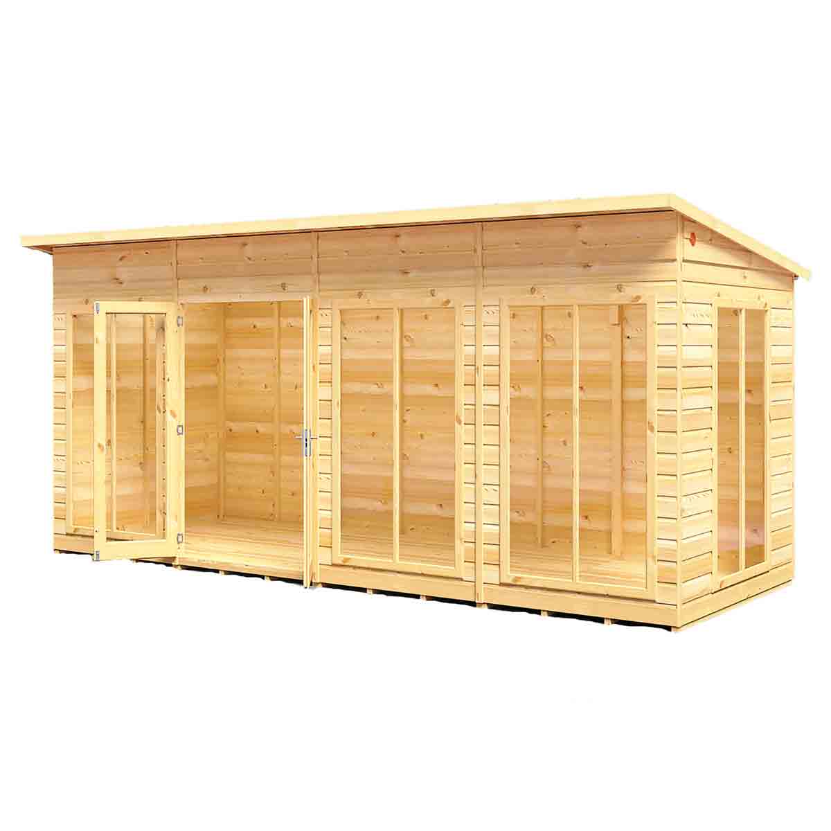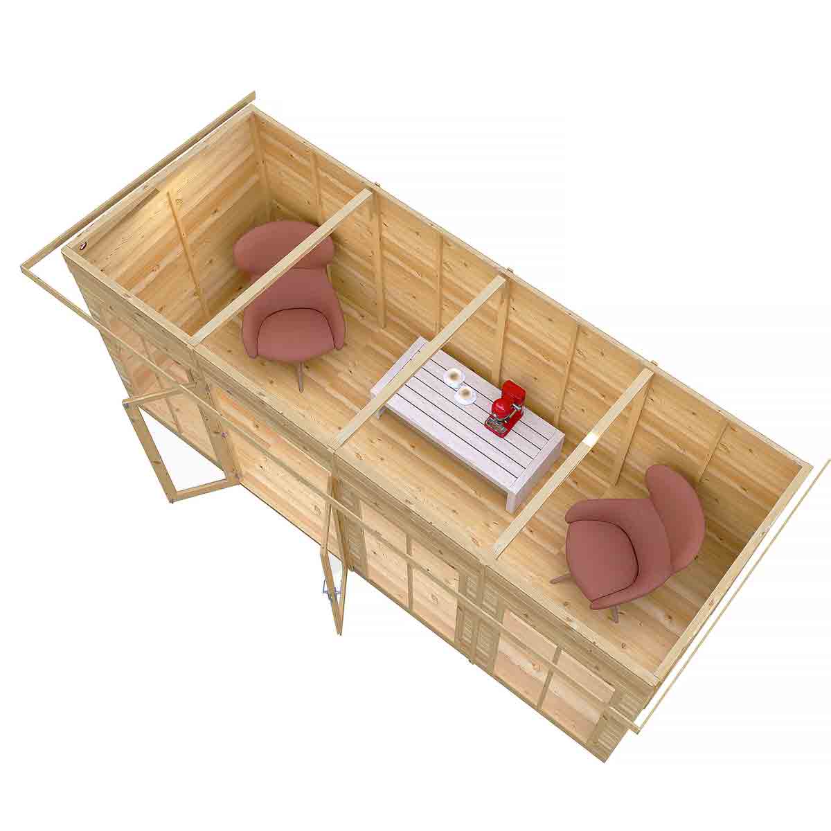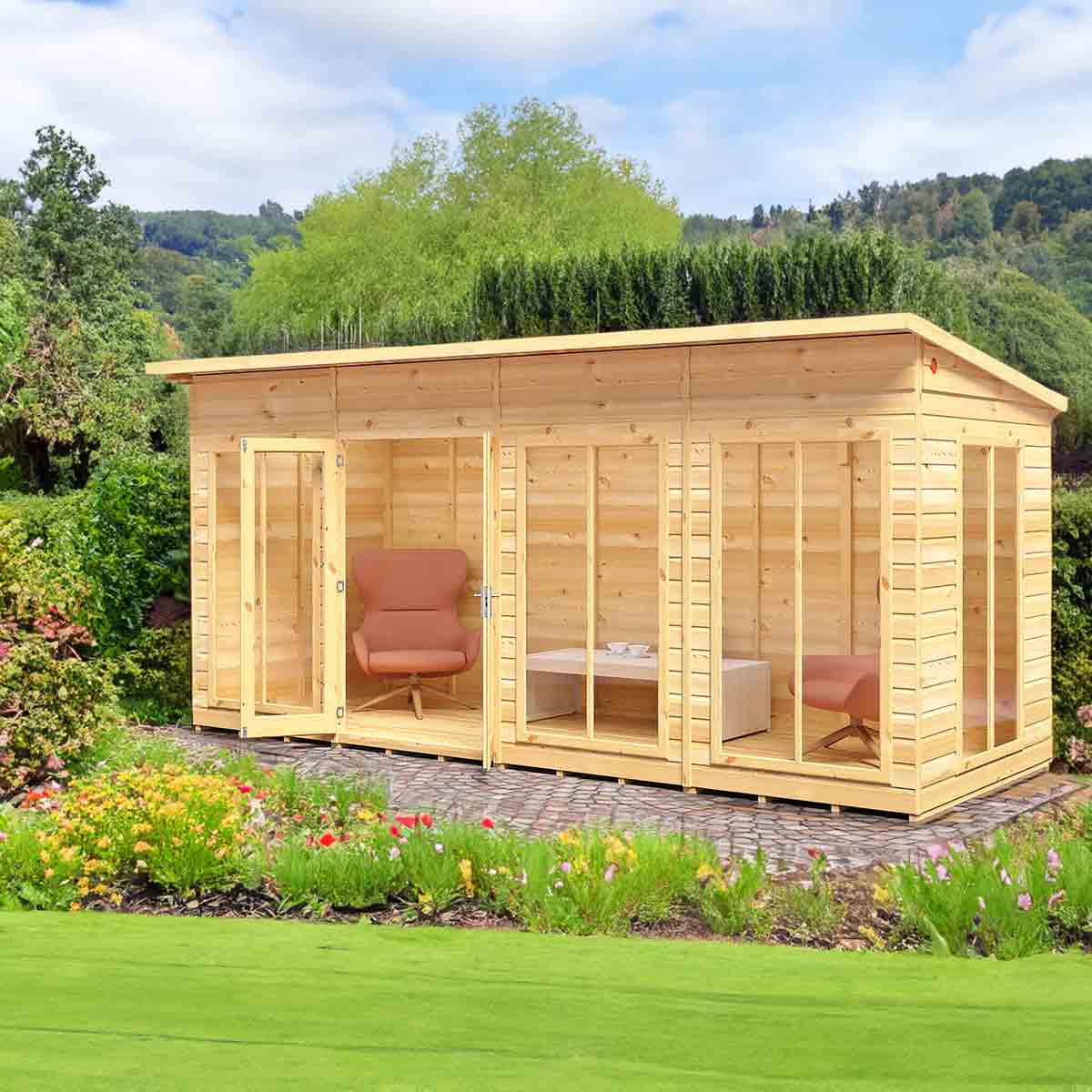 The stylish Lela Summerhouse is a valuable addition to your outdoor living - this modern garden room is perfect for summer dining and relaxing. With an eaves height of around 7 ft high, the Lela provides a very comfortable, spacious interior. The joinery made double doors are fitted with a mortice lock and, like the fixed windows, are glazed with styrene safety glazing. The building is constructed on mighty 44mm square framing and clad with planed shiplap tongue and groove boards made only from the highest grade, slow grown, slow grown pine. The floor and roof are 12mm matching T&G boards and the roof comes with mineral felt supplied. The summerhouse is supplied with a honey brown dip treated base coat preservative ready for you to top coat to your choice immediately on installation; this could be a paint or a stain. Our picture illustrates what can be achieved with decoration. When siting, allowance should be made for the roof overhang and access for painting and during installation. If factory installation is selected: Your building will be delivered and installed onto your prepared site. This needs to be flat and level to a sufficient size. Grass, soil or gravel are not sufficient as they will move with the weight of a building. Following your order, you will be sent a link to choose your delivery day. On the morning of delivery day you will also receive live tracking information. Before you assemble your building, you will need a base which is flat and level to a sufficient size. Grass, soil or gravel are not sufficient as they will move with the weight of a building.