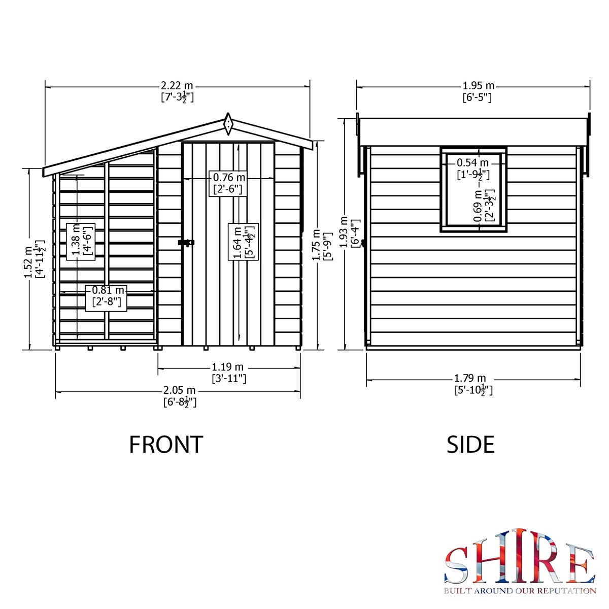 Dimensions shown are for the exterior wall of the building. (Imperial measurements are rounded so please refer to the metric sizes for accuracy).