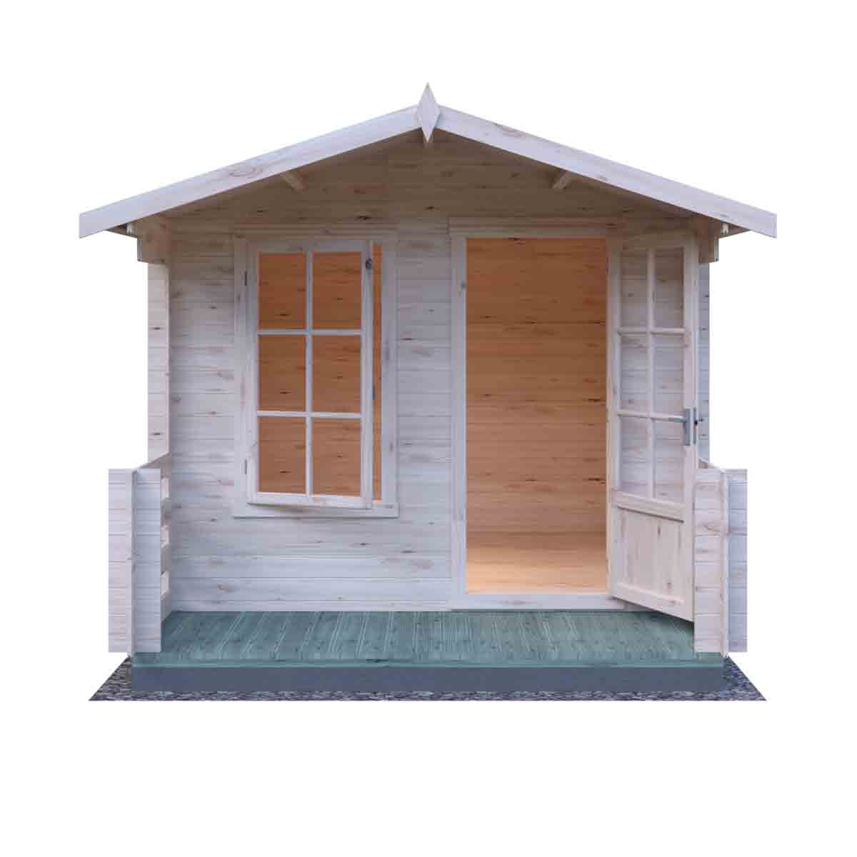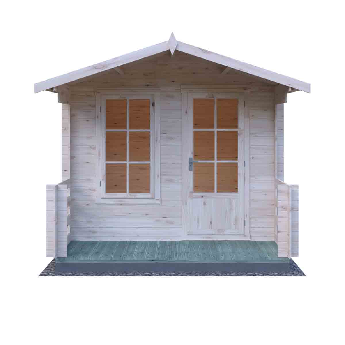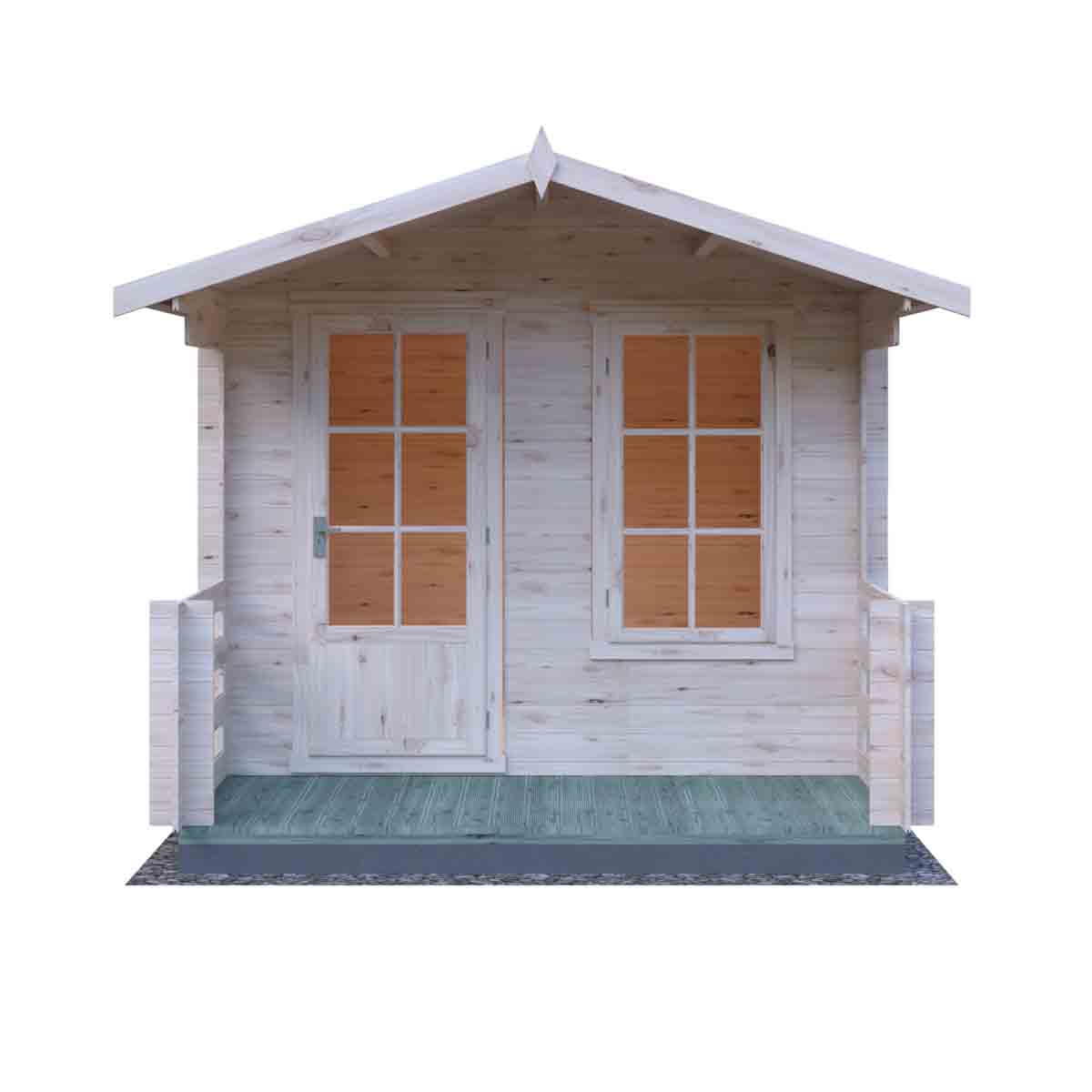 The 9’ x 9’ Maulden log cabin is an attractive addition to any garden, the high-quality Georgian window and door together with decked terrace give you a great garden building. This top-quality log cabin has 19mm interlocking high-grade pine boards to the walls with tongue and groove boards to roof and floor.