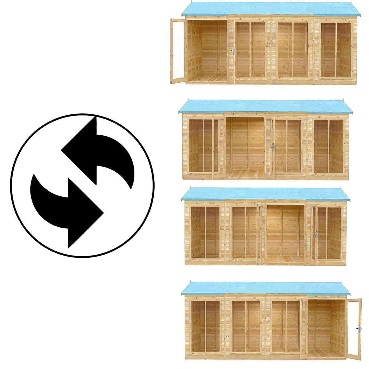 - Interchangeable door & window locations