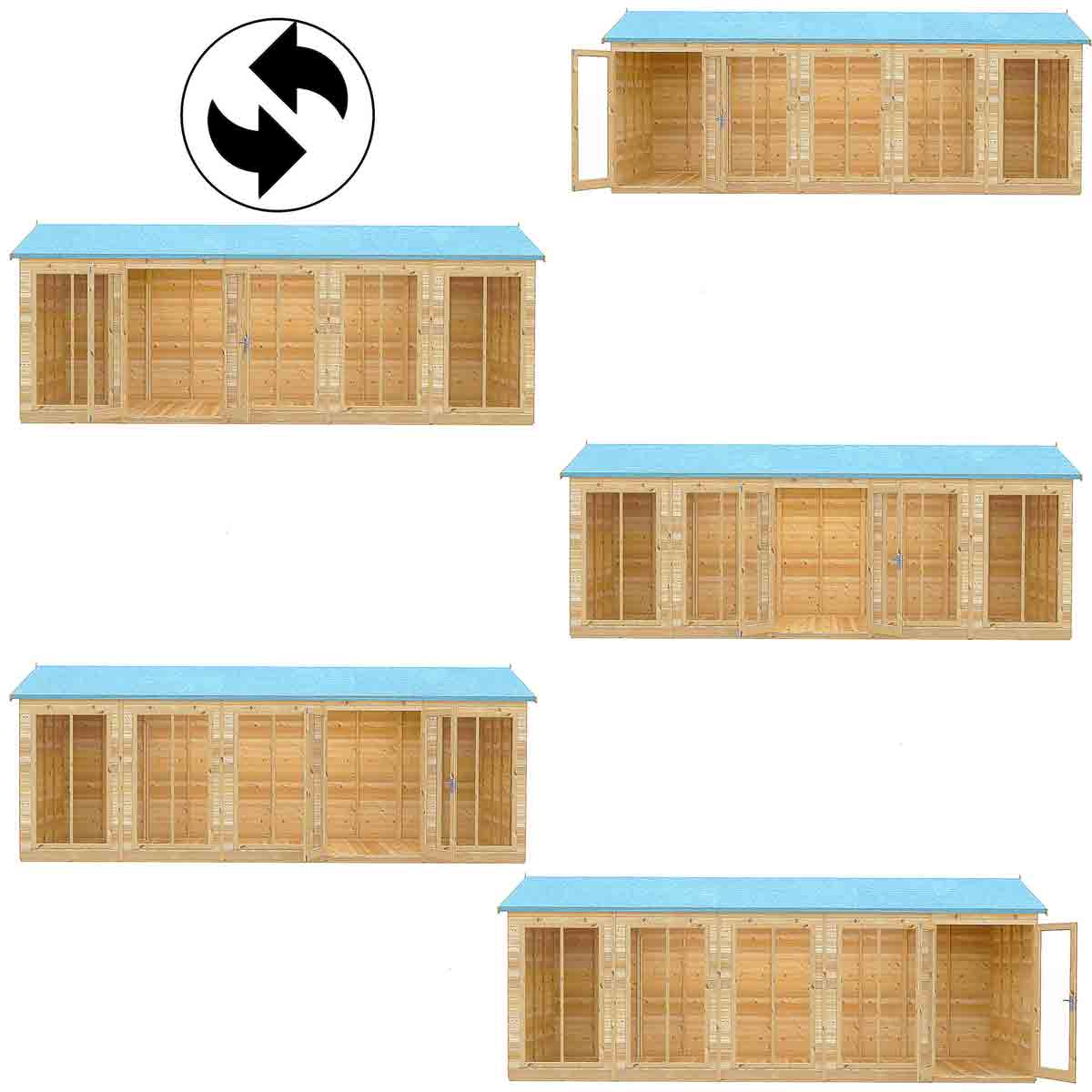 The Mayfield is a stunning summerhouse with the fully glazed front providing lots of natural light, the glazing is acrylic for your safety. There are useful double doors giving easy access and these are also lockable. This lovely garden room is constructed from high grade 12 mm pine shiplap boards over sturdy 34 mm x 34mm framing. The floor and roof are 12 mm T&G with roof felt provided to complete the roof exterior. The modern design also allows for different window and door layouts to best suit your location. Dipped base coat preservative ready for you to top coat.