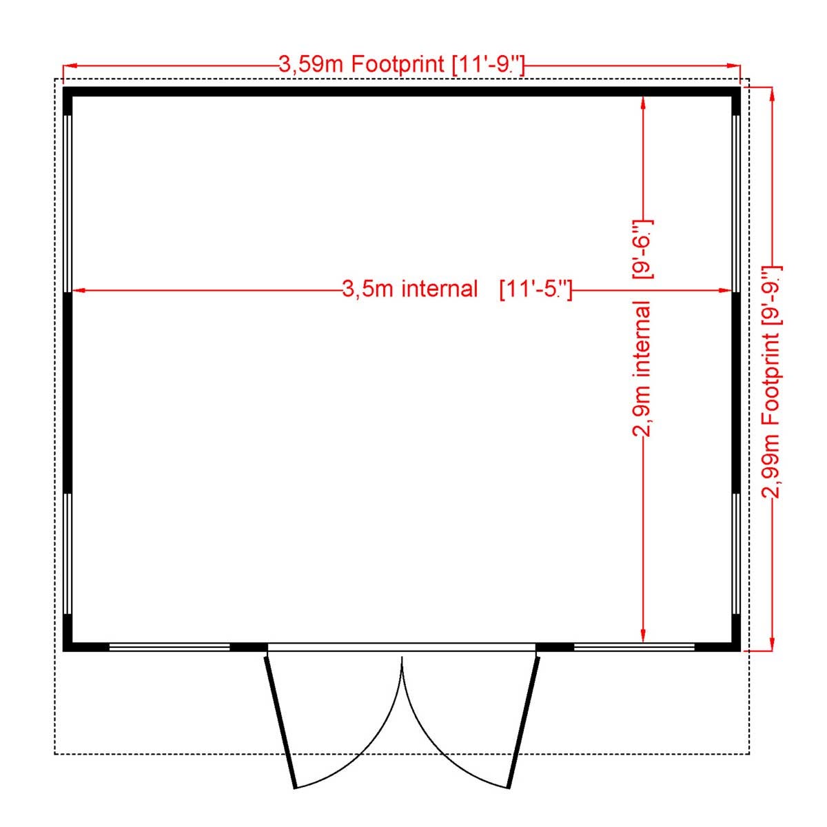 - Roof: 12mm T&G Boards (Green mineral felt supplied)