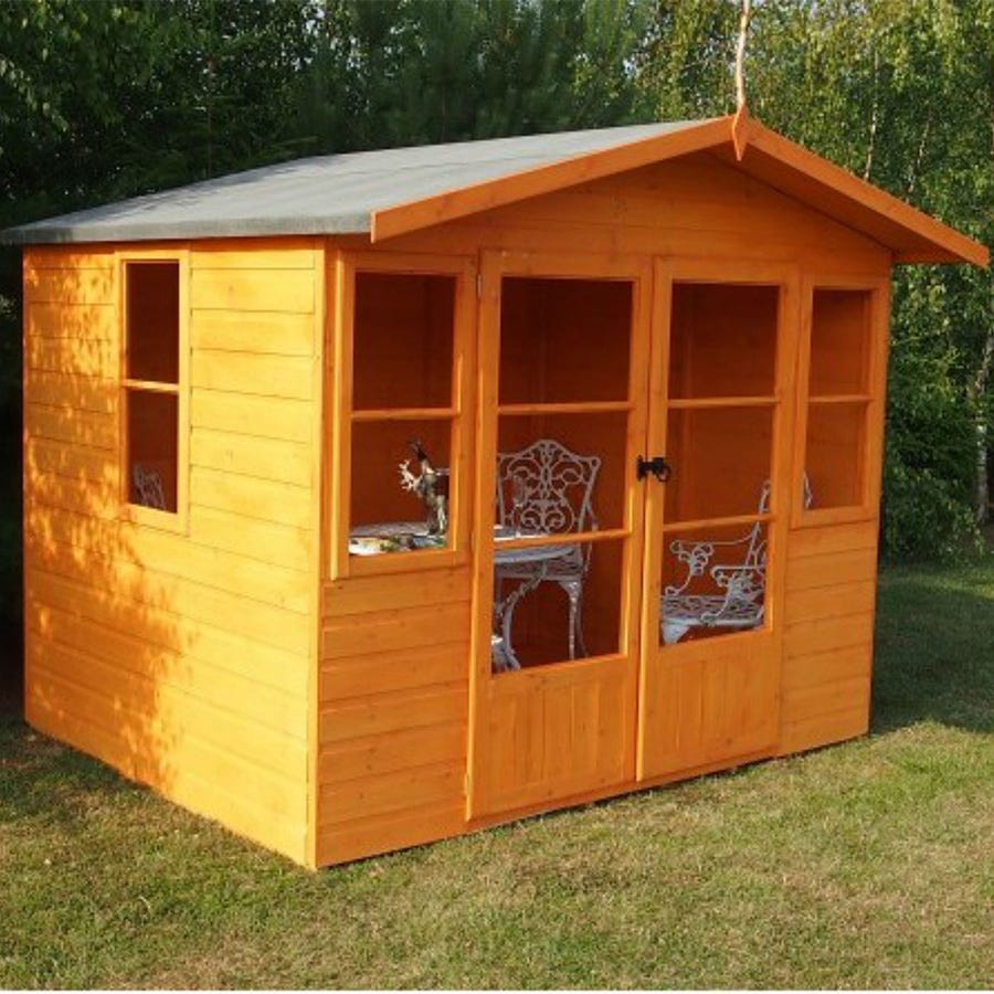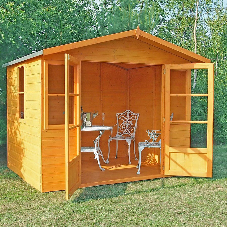 With a traditional design and modern construction, this handmade summerhouse makes a practical and attractive addition to any garden. Great for use as a hobby room, casual outdoor dining setting or just a place to relax with family and friends, it boasts large double doors for easy access and plenty of natural light, and high eaves for added comfort and convenience.