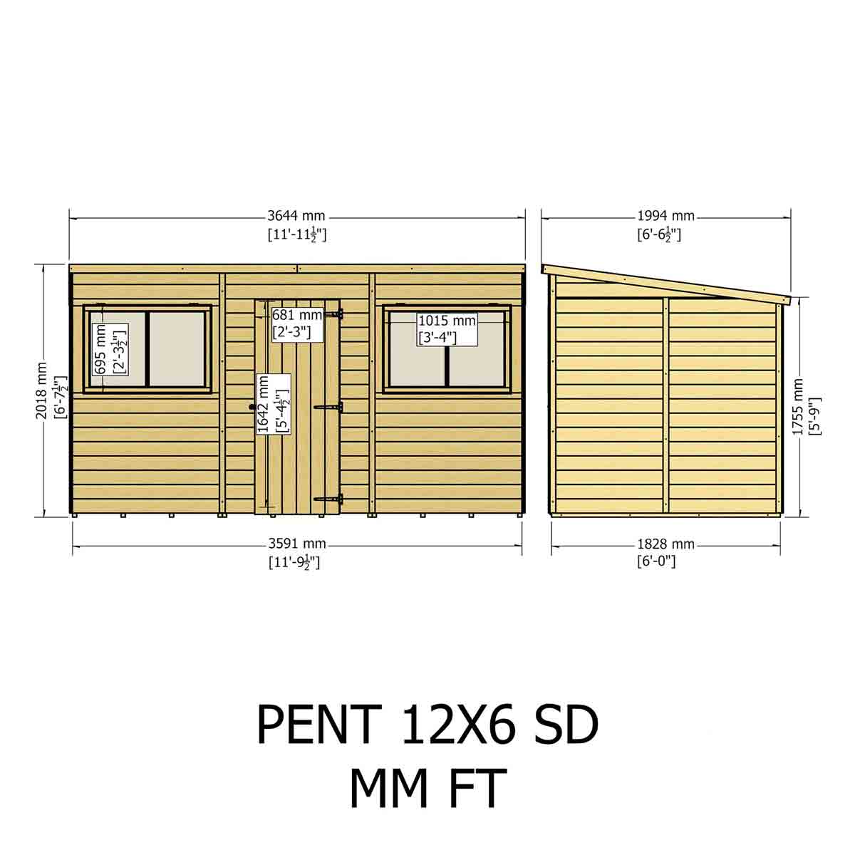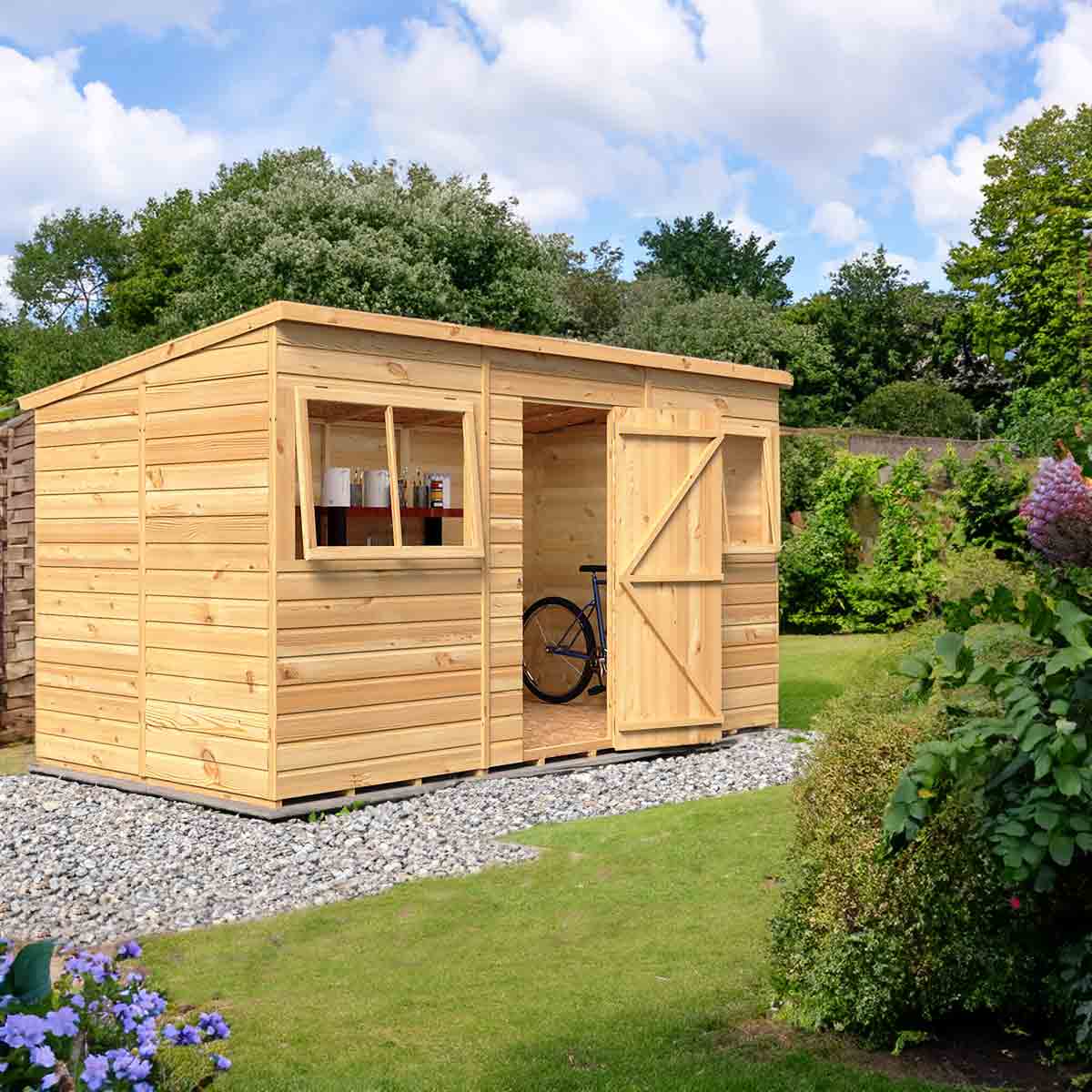 A quality garden shed ideal for all your tools, lawn mowers, bikes, toys; the list is endless! This Pent Shed has joinery quality, storm resistant, opening glass windows. Manufactured from high grade, approved timber with 12mm shiplap tongue and groove cladding over sturdy 34mm square framing, OSB roof and floor. A padlock friendly hasp & staple is supplied for the single door.