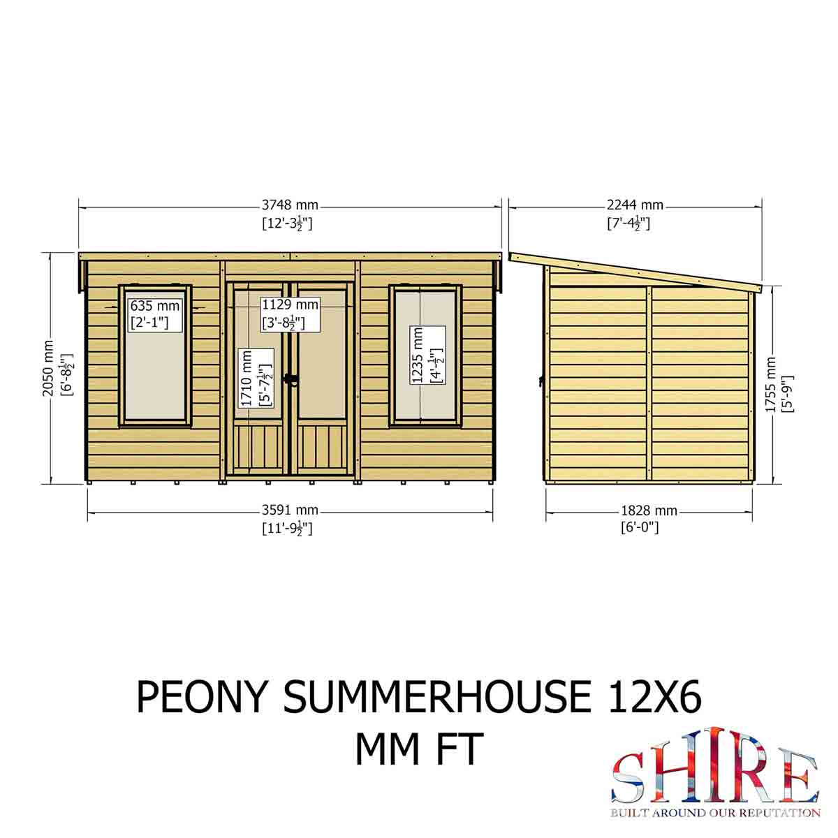 The pretty Peony Summerhouse is complete with acrylic safety glazing with two opening windows included to provide a welcome breeze. Double doors, featuring engineered timber doors to prevent risk of warping, provide excellent access for furniture. This lovely pent roof garden room is constructed from high grade shiplap cladding to the walls over 34mm strong framing with OSB floor and roof. Dipped base coat preservative ready for you to top coat.