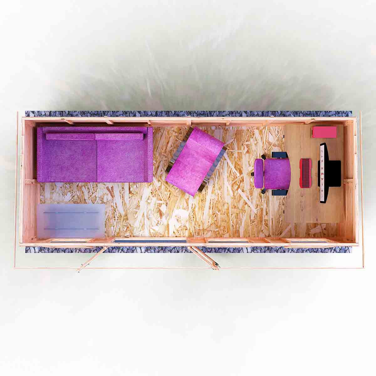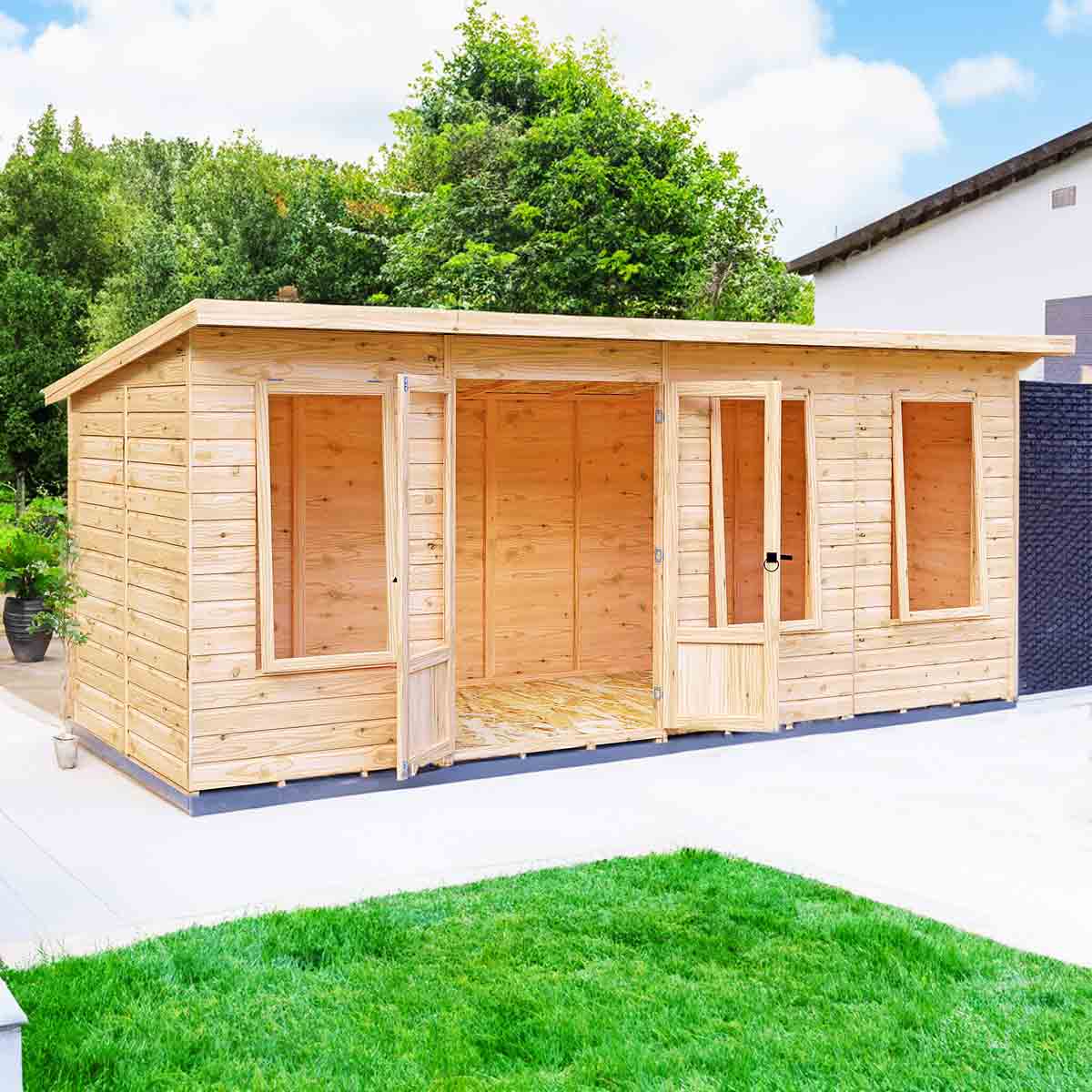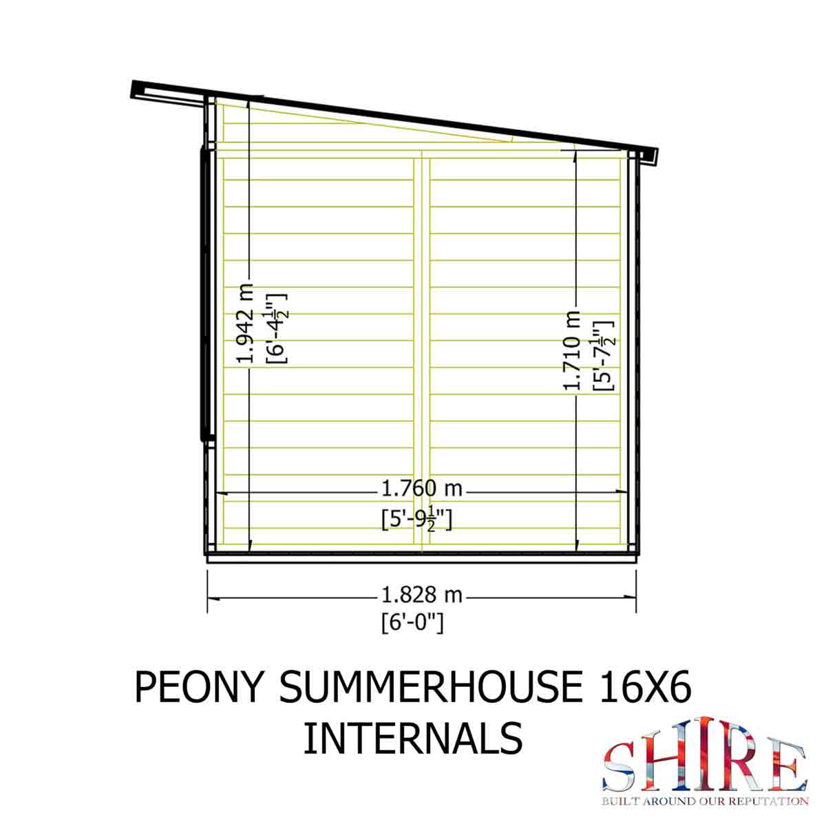 The pretty Peony Summerhouse is complete with acrylic safety glazing with three opening windows included to provide a welcome breeze. Double doors, featuring engineered timber doors to prevent risk of warping, provide excellent access for furniture. This lovely pent roof garden room is constructed from high grade shiplap cladding to the walls over 34mm strong framing with OSB floor and roof. Dipped base coat preservative ready for you to top coat.