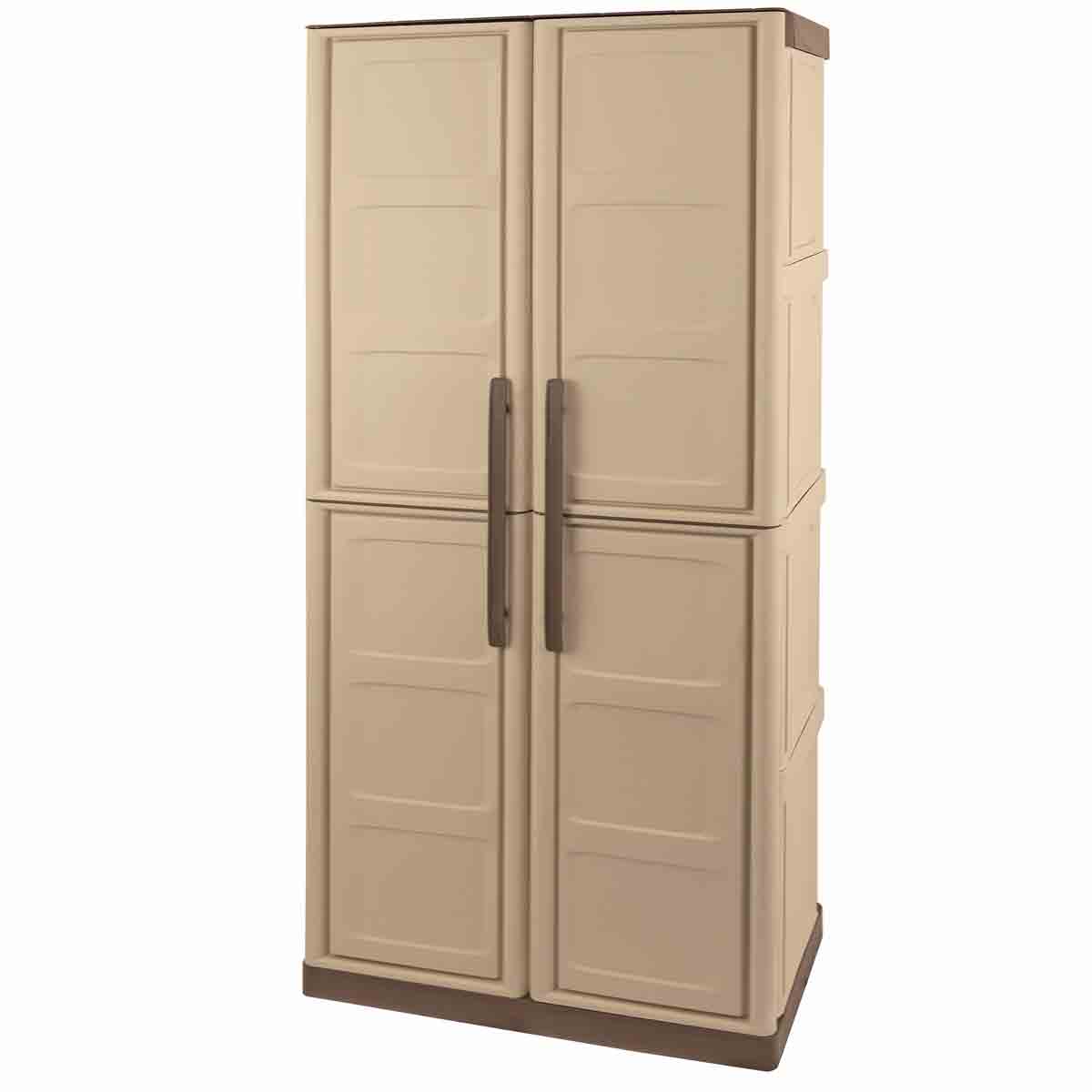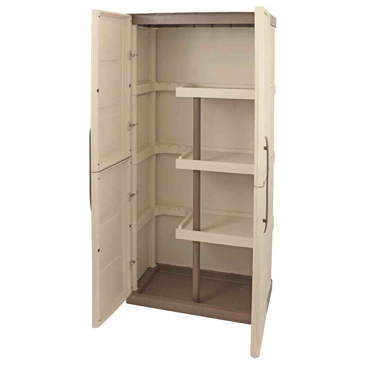 Store your mops, brooms, paints and other items neatly away in this large storage cabinet from Shire. Ideal for garages, workshops, sheds or other sheltered locations, it’s built to last and makes a strong and sturdy home for your belongings.