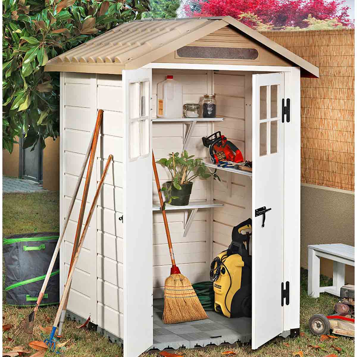 It is easy to build with step by step instructions and video guidance. The attractive Mediterranean styling make this, virtually maintenance free shed, a great feature in any garden or patio.