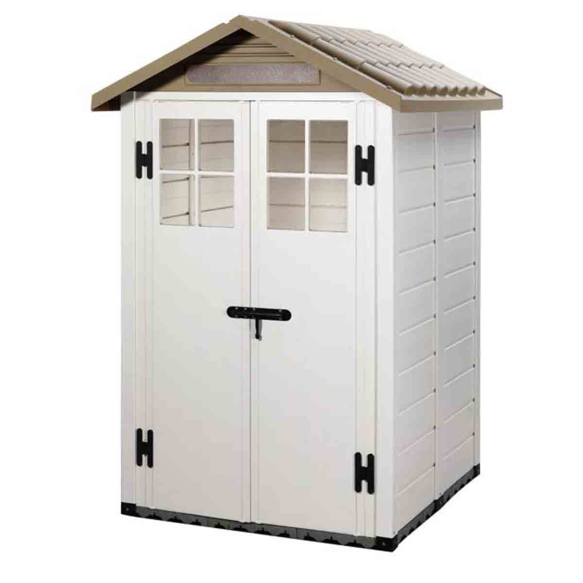 Design details such as gloss black hinges and pad-bolt add to the unique appearance of this plastic shed. The door is also padlock friendly ready for you to fit your own. The ABS tile effect roof really makes this shed stand out and is UV resistant.